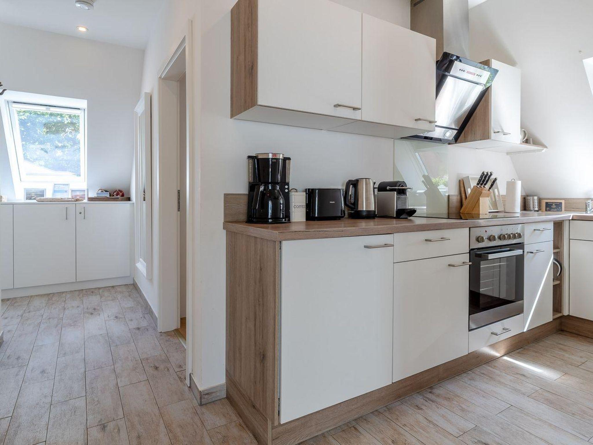 Die Küche ist vollständig ausgestattet und lässt keine Wünsche offen: Ein moderner Herd (Ceran), ein Elektro-Backofen, eine Spülmaschine sowie eine Mikrowelle und Kühlschrank mit Gefrierfach gehören zur Ausstattung. Hier können Sie Ihre Lieblingsgerichte zubereiten. Für zusätzlichen Komfort stehen Ihnen auch Küchenutensilien, Geschirr und Besteck zur Verfügung. Ein Wasserkocher und eine Kaffeemaschine für den perfekten Start in den Tag runden das Angebot ab.