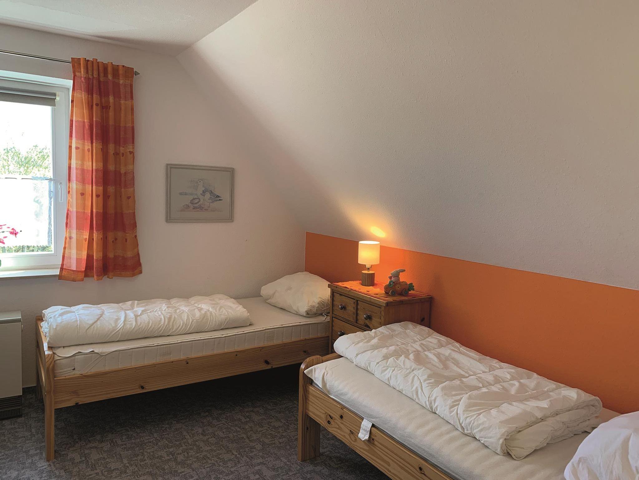 Schlafzimmer 2: 2 Einzelbetten, Nachttisch, Kommode, Kleiderschrank, Kindertisch, 2 Kinderstühle, Nachtspeicherofen