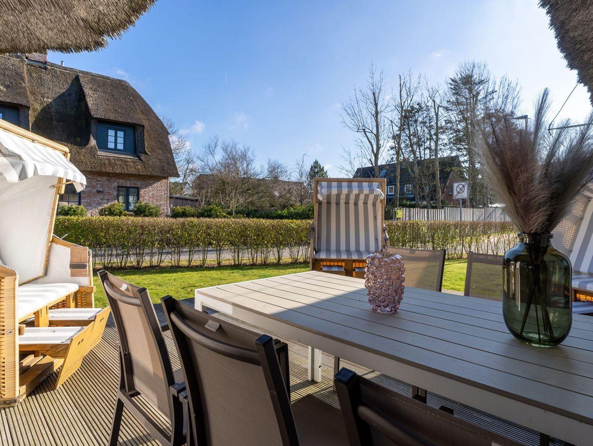 Das Appartement Fenne in St. Peter-Ording bietet 120 m² Wohnfläche, Reetdach und eine geschützte Terrasse in ruhiger Lage.