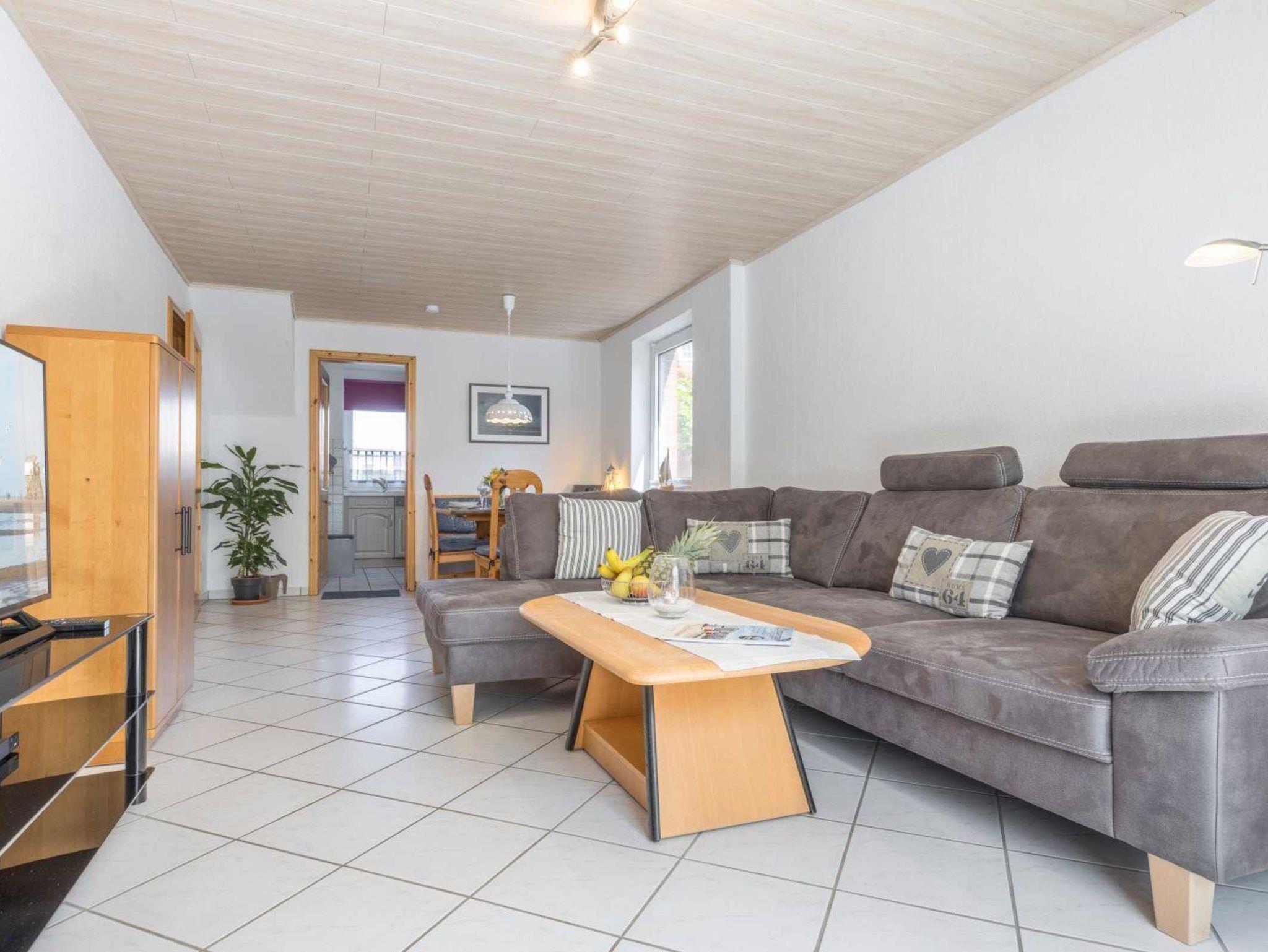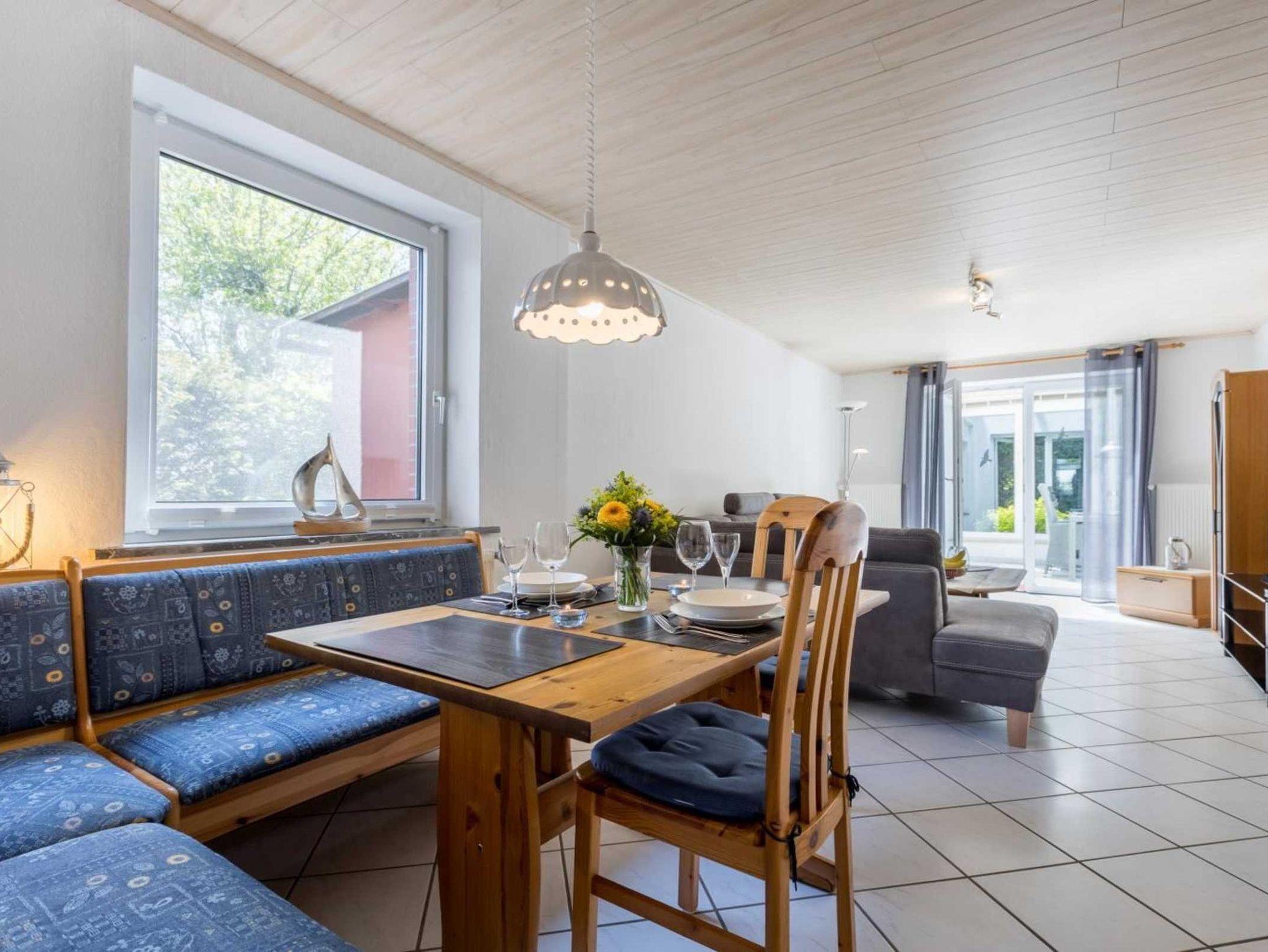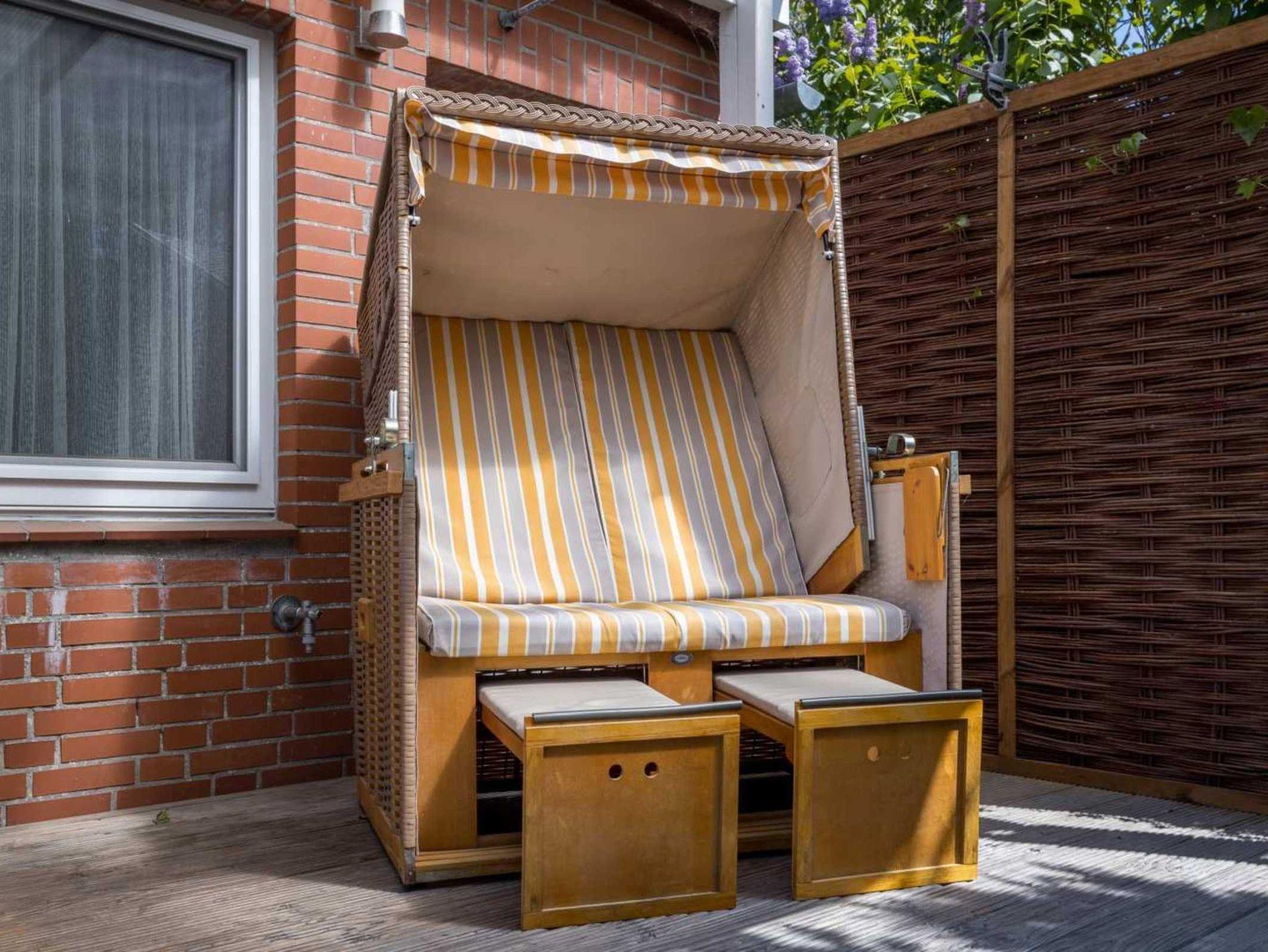 Pkw-Stellplatz, eigene Fahrradgarage und gemeinschaftlicher Strandkorb auf dem Grundstück. Kostenloses WLAN (Glasfaser).