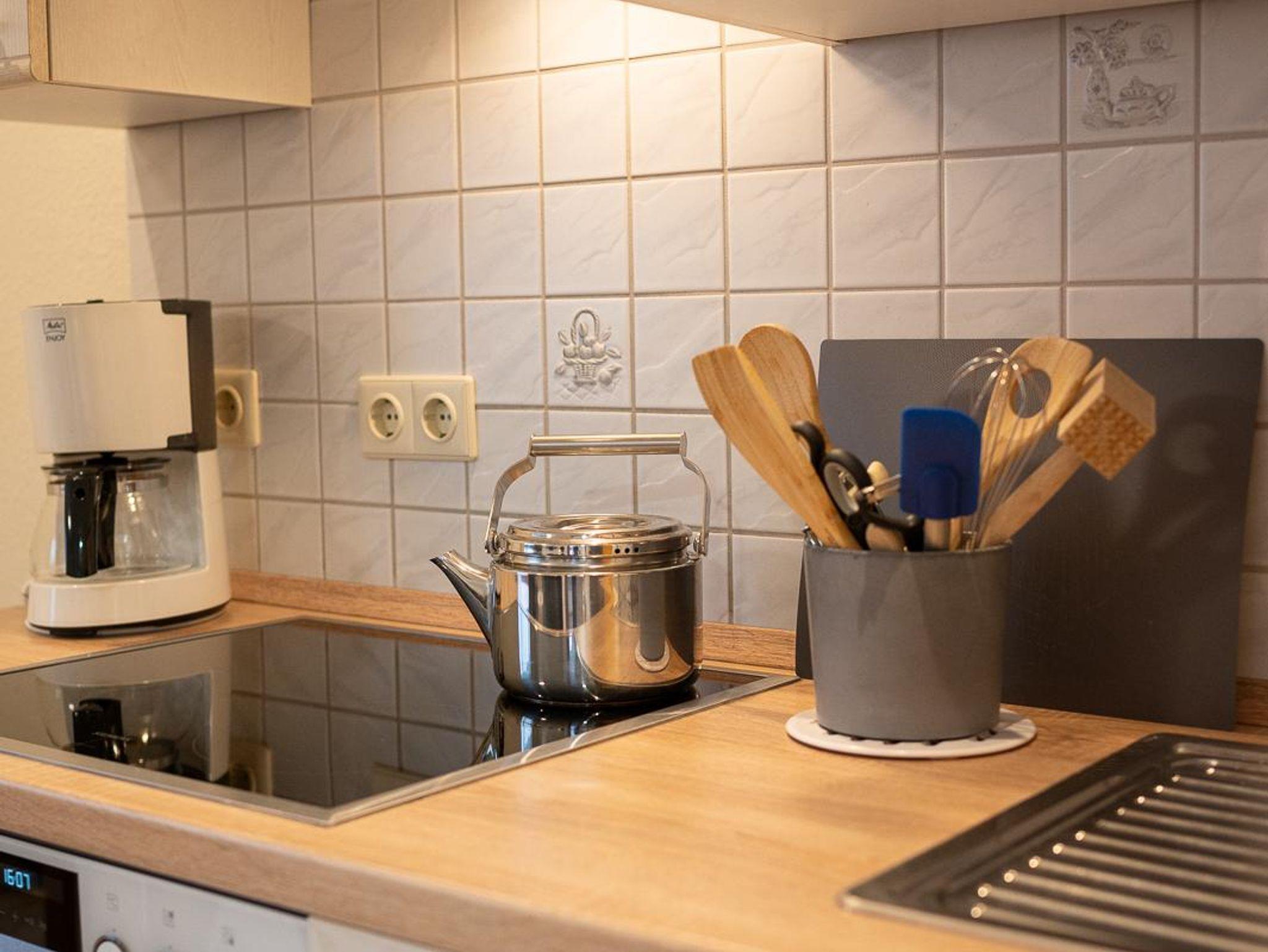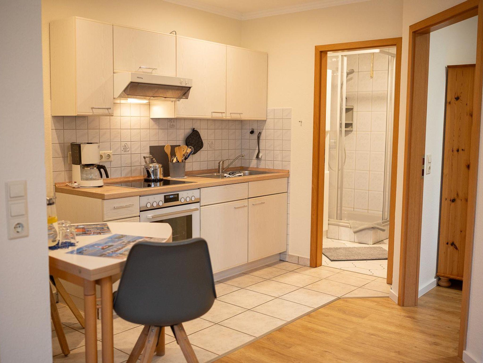 Die Ferienwohnung ist ca. 40qm groß, hat einen separaten Eingang mit Terrasse. Der gemütliche Wohnraum ist mit einer komplett eingerichteten Küche, einer Essecke, einer Sitzgarnitur und einem Fernseher ausgestattet. Im Schlafzimmer befinden sich ein Doppelbett, Nachttische und ein Kleiderschrank. Ferner sind ein Flur mit Garderobe, sowie eine Dusche mit WC vorhanden. Im Garten stehen Ihnen Gartenmöbel und ein Strandkorb mit zur Verfügung.