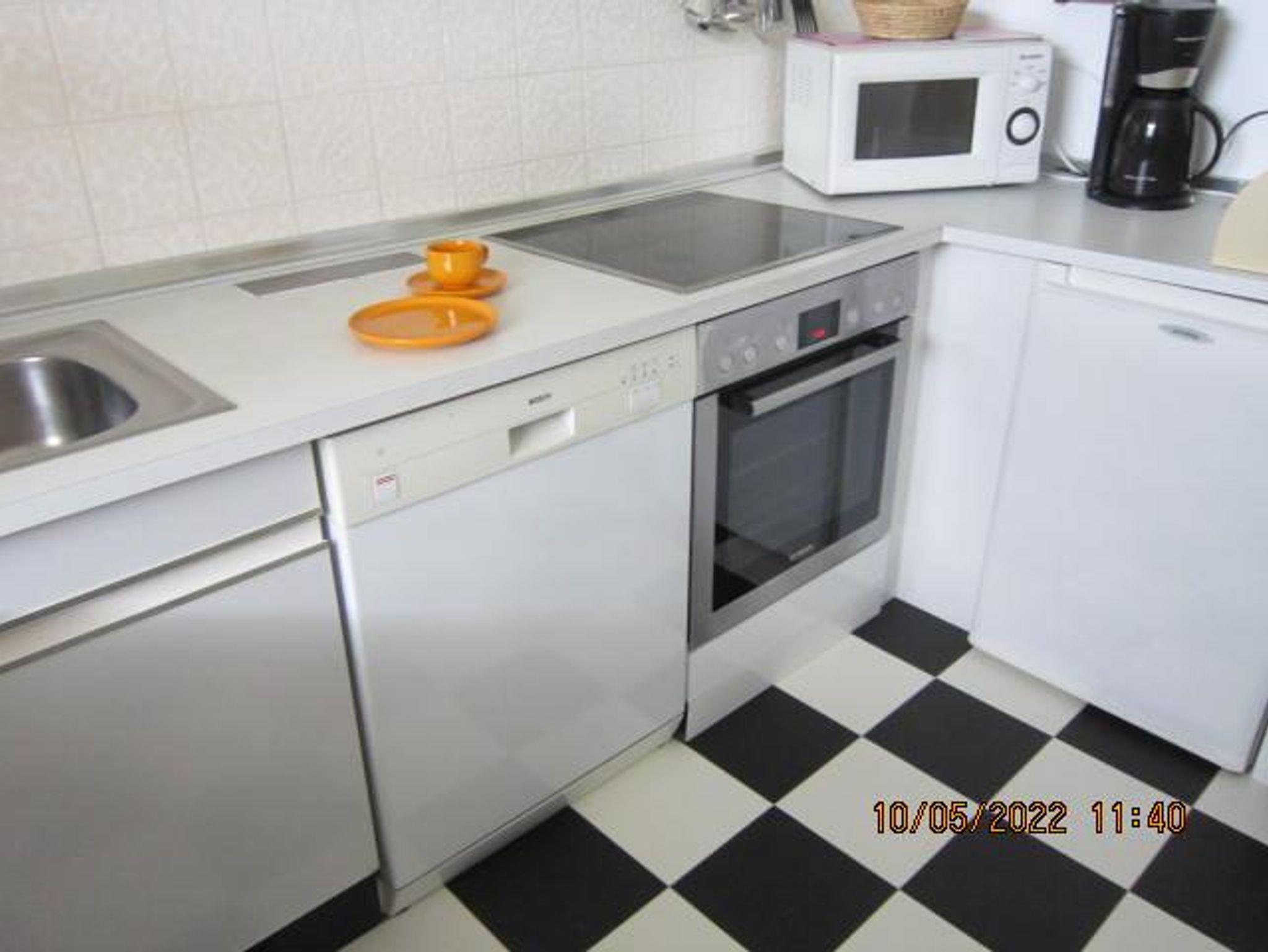 4-Plattenherd, Backofen, Bügelbrett, Bügeleisen, Einbauküche, Gefrierfach, Geschirrspüler, Kaffeemaschine, Kühlschrank, Mikrowelle, Mixer, Staubsauger, Toaster, Wasserkocher