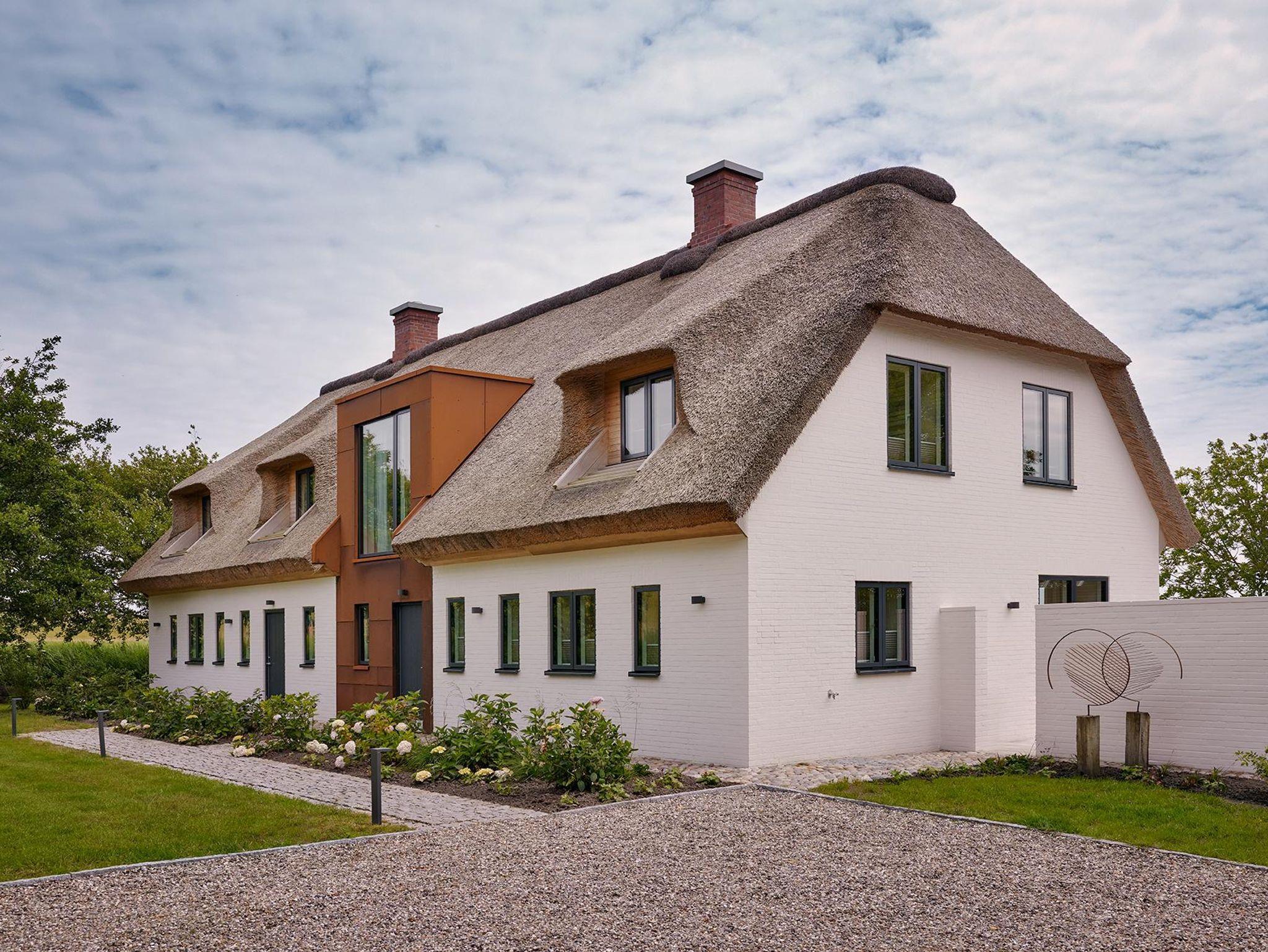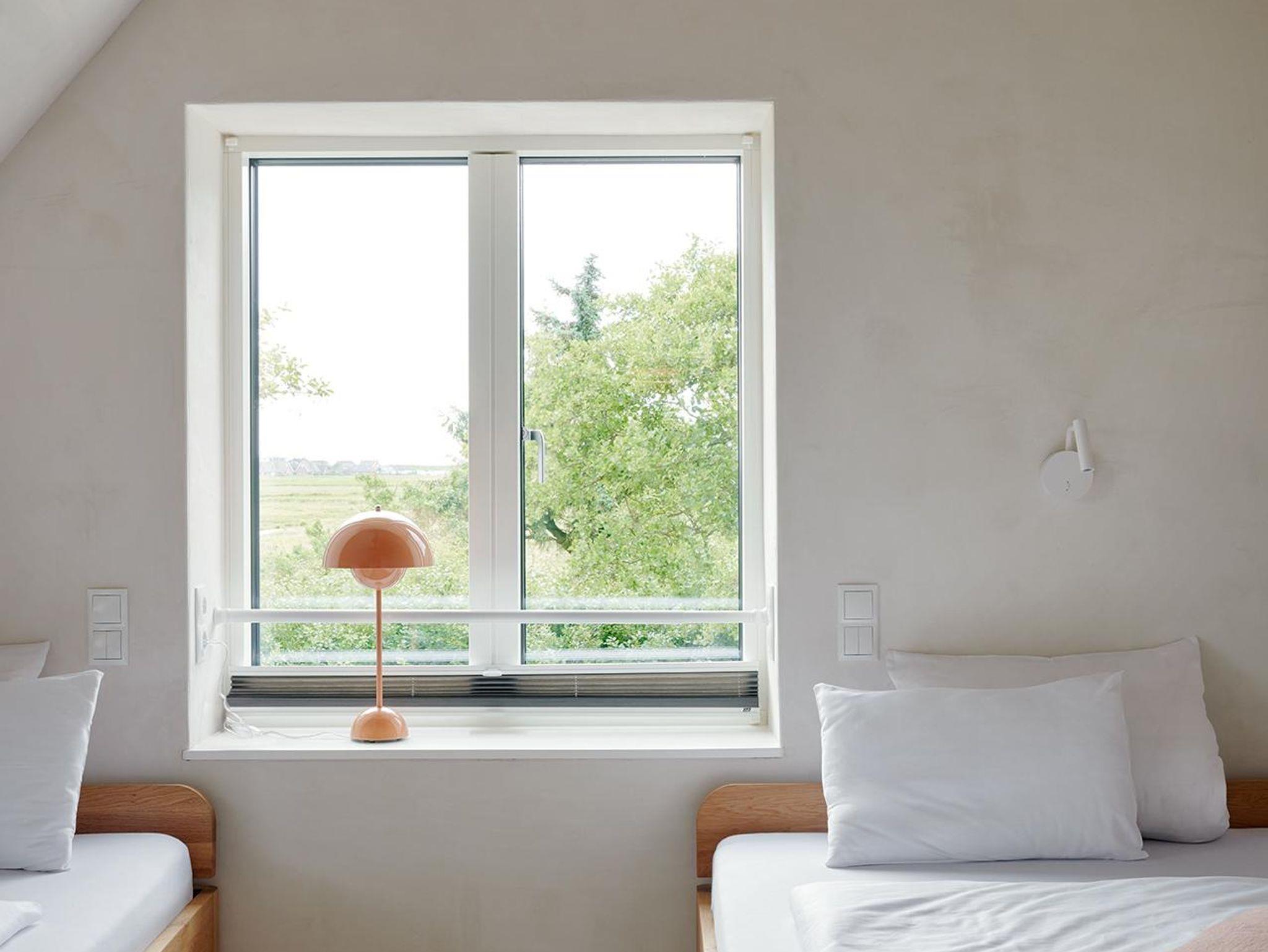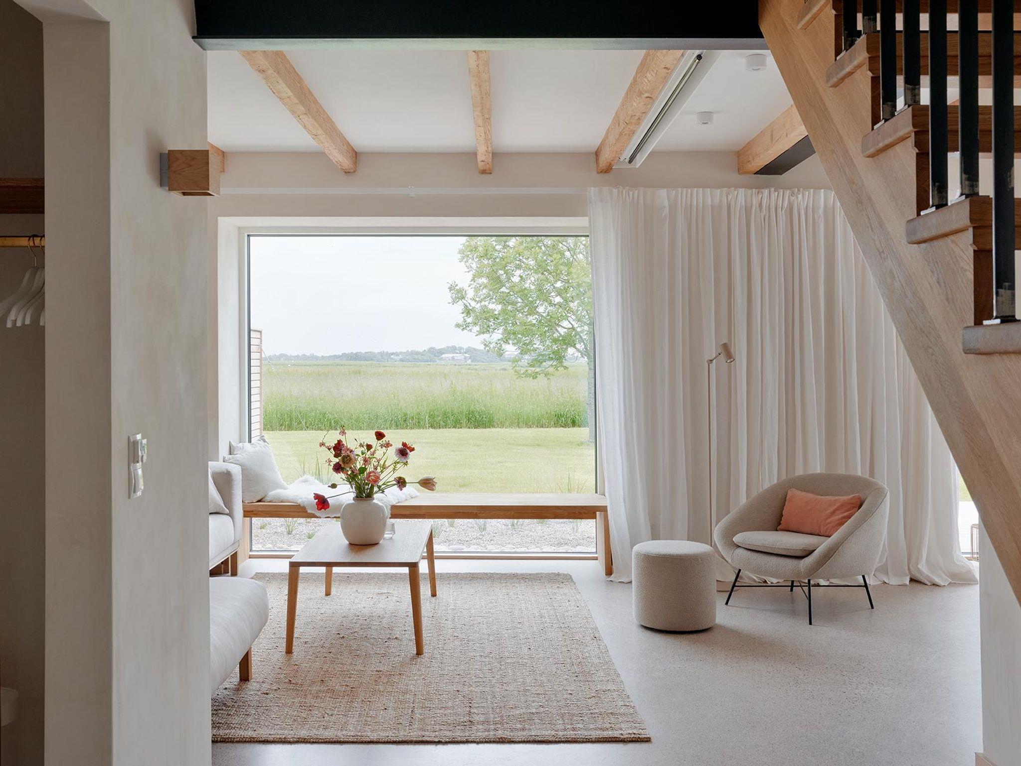 Der großzügige Wohnraum öffnet sich nach Süden und Westen mit bodentiefen Fenster- und Türelementen zu einer weiträumigen Holzterrasse und schafft so einen fließenden Übergang zwischen Innen und Außen, zur Weite der Wiesenlandschaft Eiderstedts. Das norderdiekhuus mit der großen, sehr gut ausgestattete Küche, mit dem breiten Sofa am Fenster mit Weitblick sowie den drei sehr gemütlichen Schlafzimmer im Obergeschoss, eins davon mit Bad en suite, bietet Platz für bis zu sechs Gäste. Die Ferienwohnung ist komplett mit Fussbodenheizung ausgestattet.