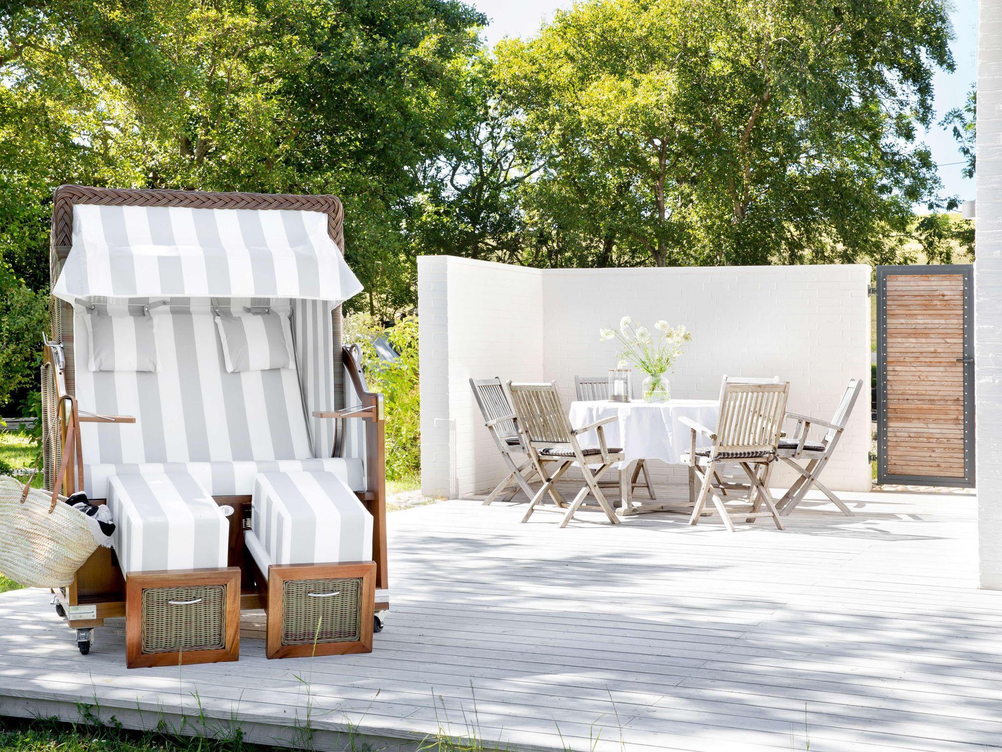 An sonnigen Tagen nutzt man die schöne Terrasse ausgestattet mit dem entsprechenden Mobiliar und Sonnenliegen. Ein Gasgrill steht zur Verfügung.