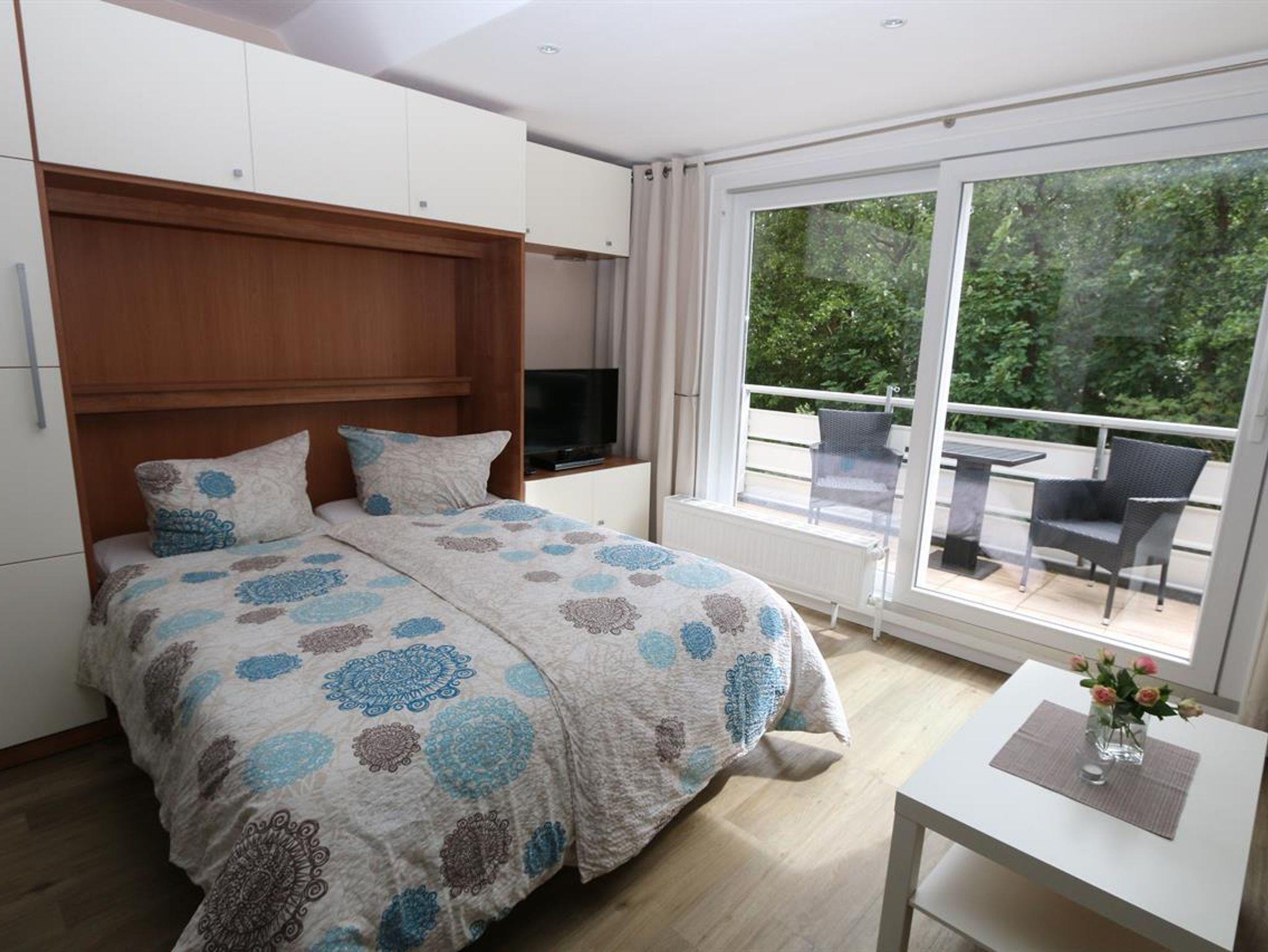 kombinierter Wohn- Schlafraum, Doppelbett als Schrankbett, Flachbildschirm, DVD-Player, Radio