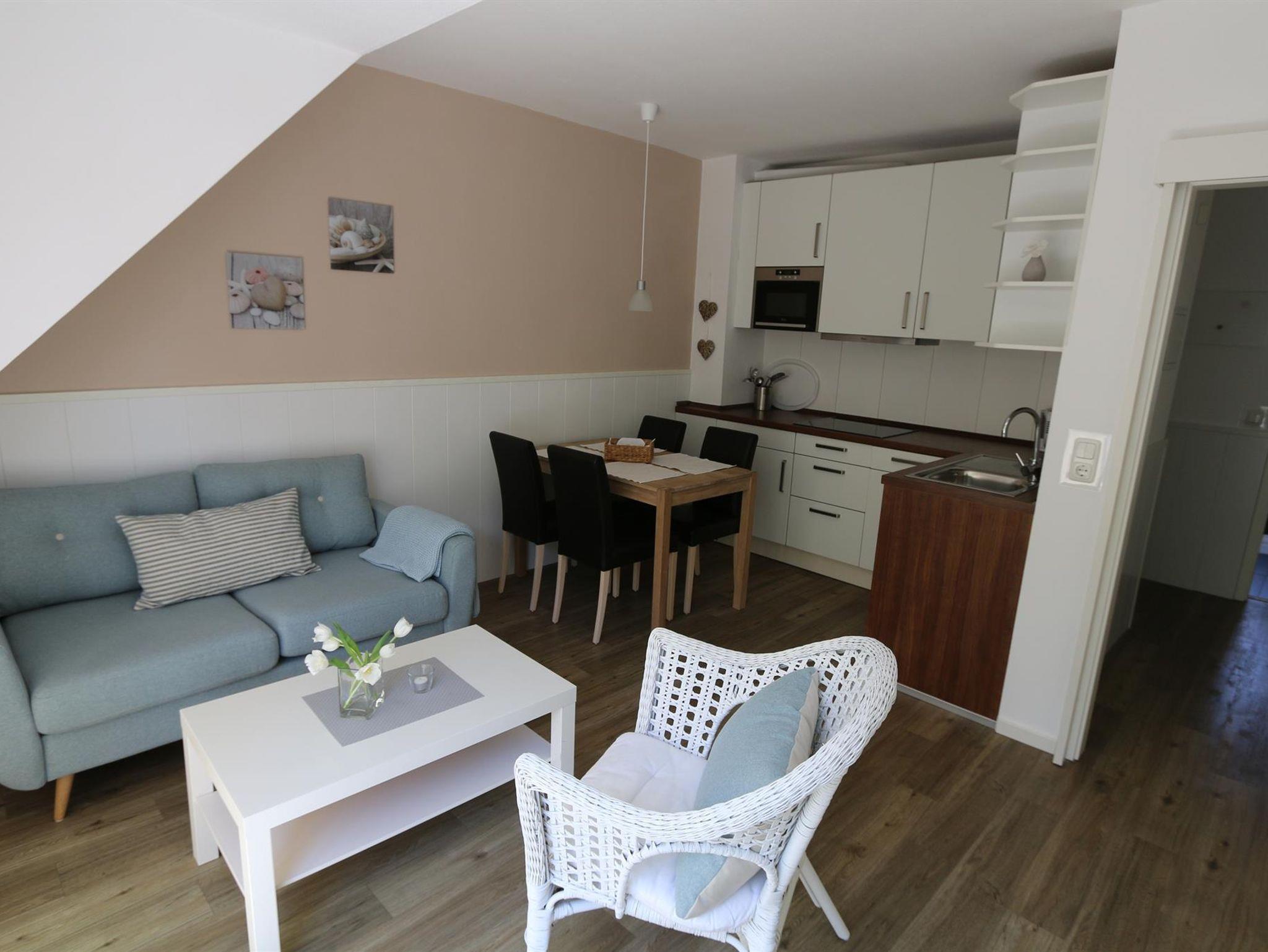 Helles Appartement mit Balkon und moderner Ausstattung in St. Peter-Ording, ideal für Familien und Erholung am Meer.