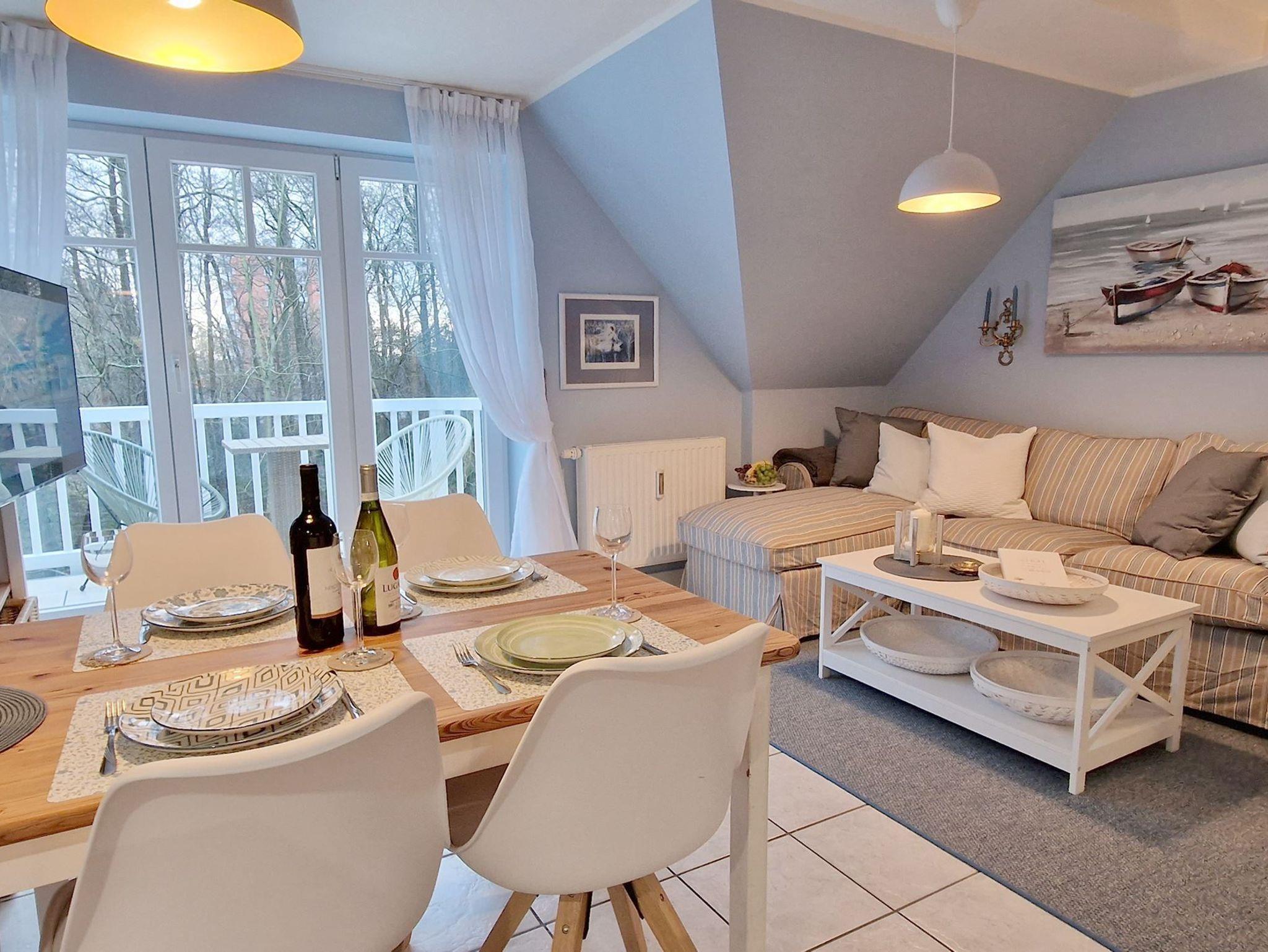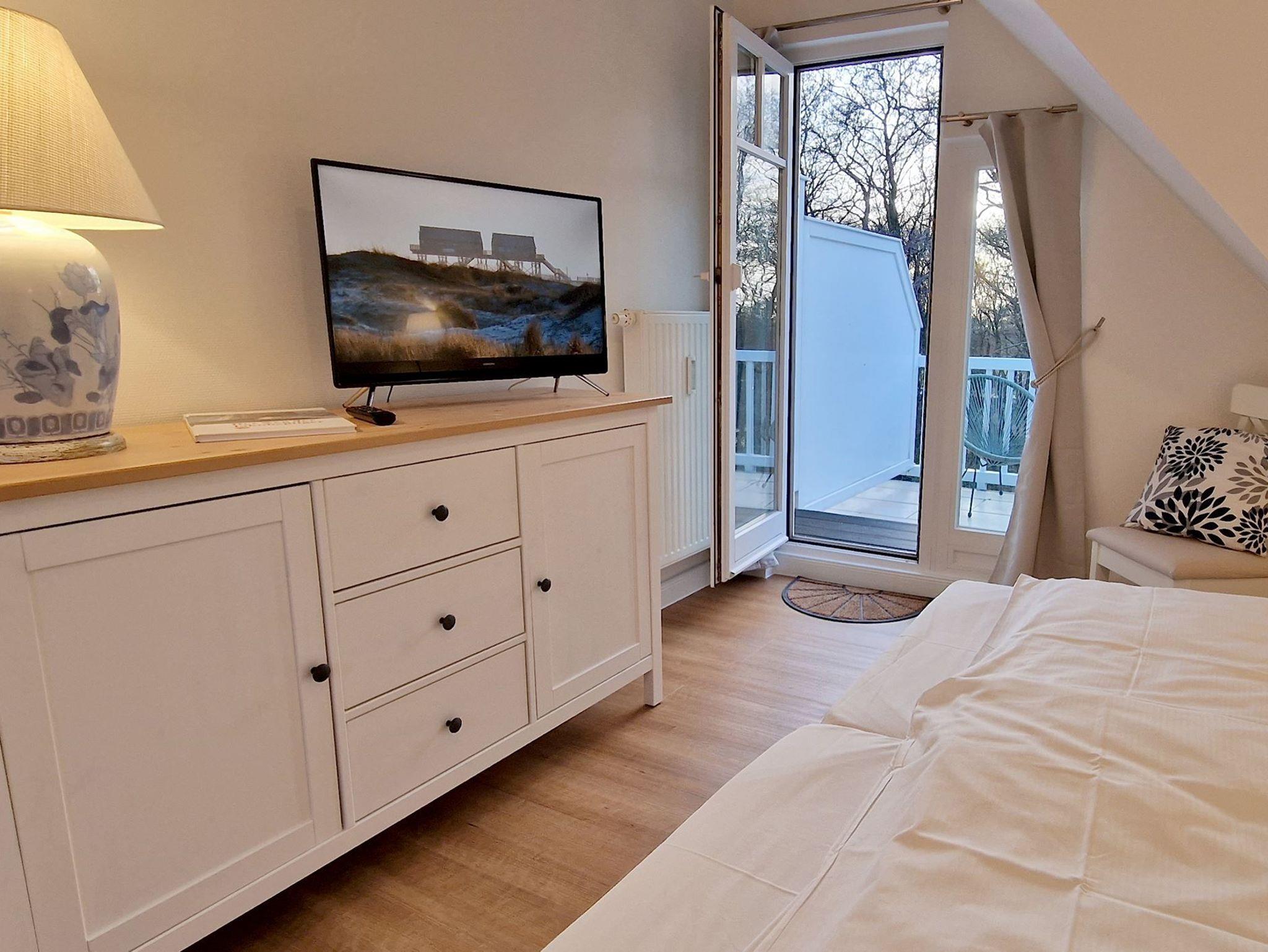 Moderne 3-Zimmer-Ferienwohnung in St. Peter-Ording mit zwei Balkonen und WLAN, ideal für erholsame Tage am Meer.
