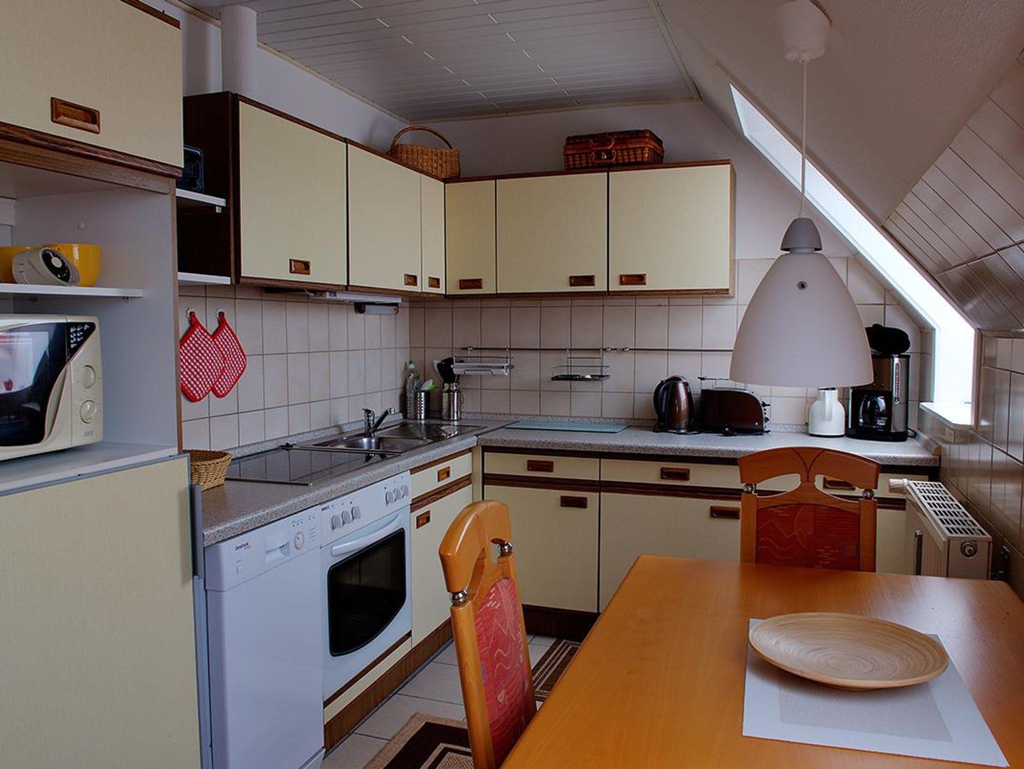 - Ceranherd mit Backofen, Geschirrspüler, Mikrowelle und Kühlschrank mit Gefrierkombination, Mixer, Toaster, Wasserkocher, Kaffeemaschine sowie entsprechendes Geschirr,