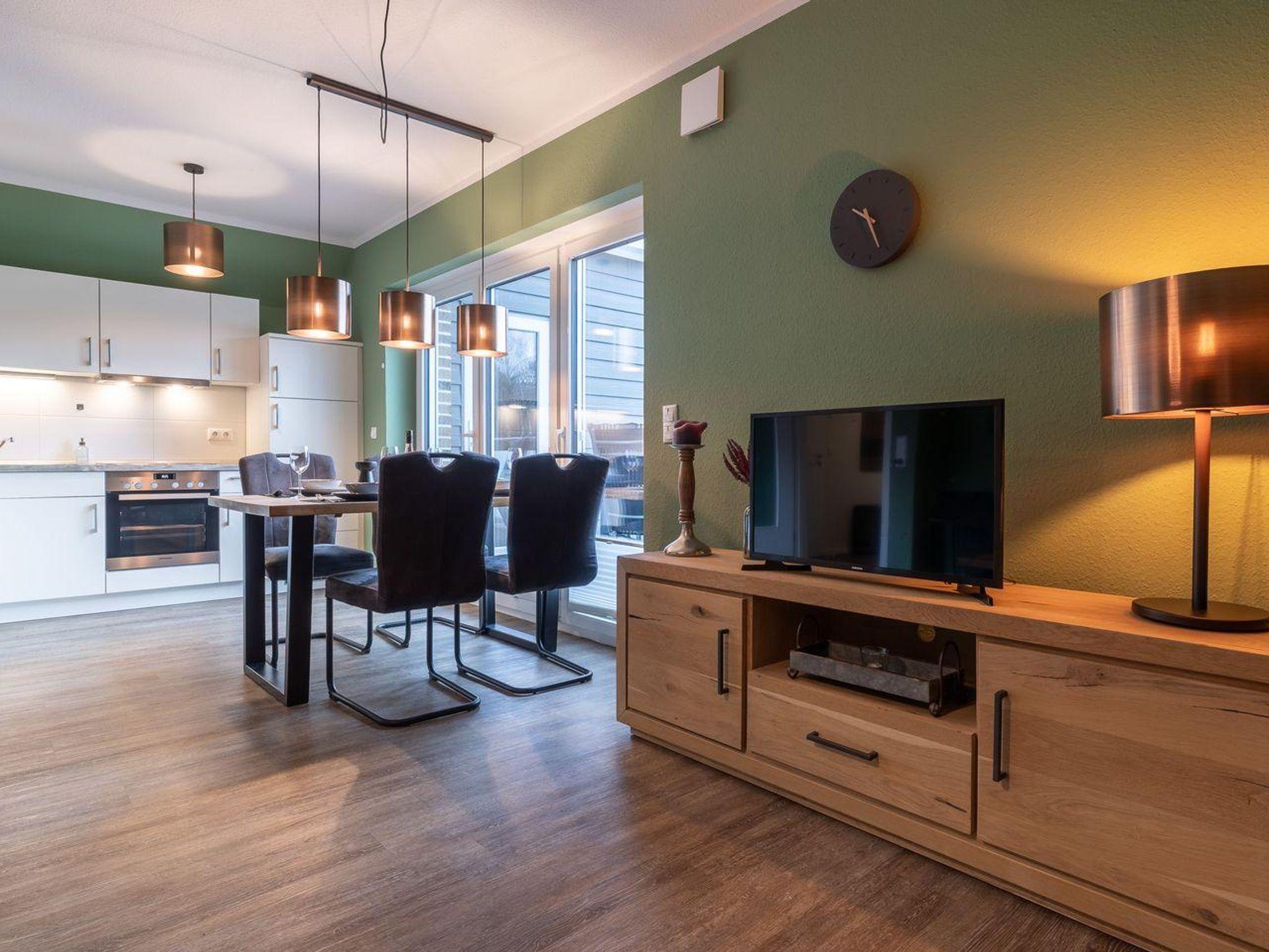 Das gemütlich eingerichtete Appartement liegt im Obergeschoss und verfügt über ca. 64 m² Wohnfläche. Es bietet Platz für 4 Personen. Der lichtdurchflutete Wohnraum mit TV, Ecksofa und einem gemütlichen Essbereich bietet jeden Komfort. Ein gemütlicher Balkon lädt zum Sonnen ein. Die Küche mit hochwertigen Geräten grenzt direkt am Wohnzimmer an. Das Duschbad ist großzügig gestaltet und bietet genügend Platz für Ihre Utensilien. Die Schlafzimmer sorgen für ruhevolle Erholung. Die Wohnung ist mit sehr viel Liebe zum Detail ausgestattet.