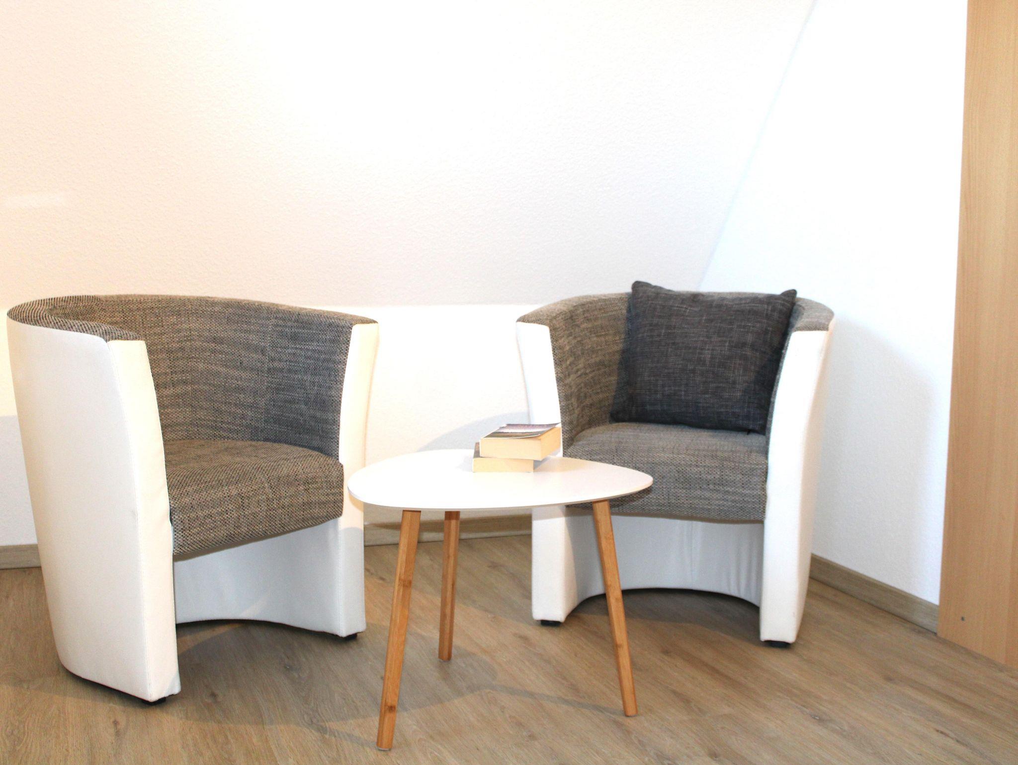 • Wohnzimmer: Großzügige Sitzecke, SAT-TV, Radio – perfekt zum Entspannen.