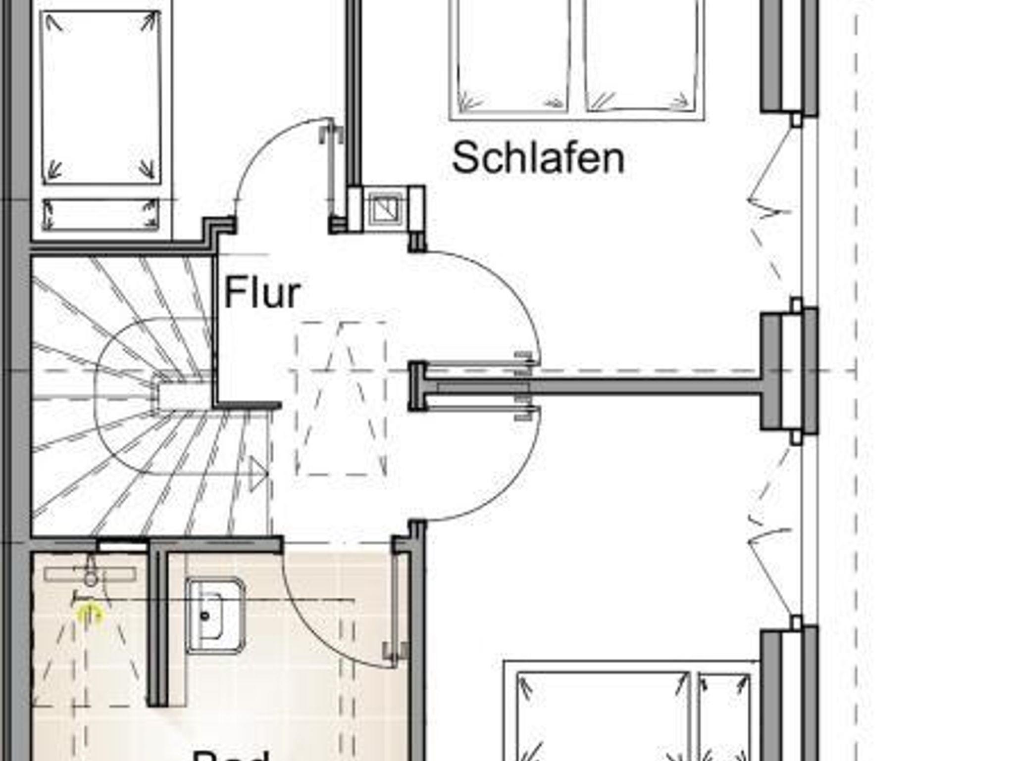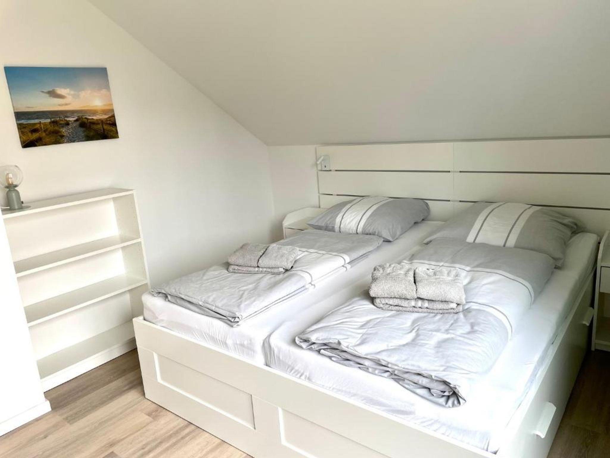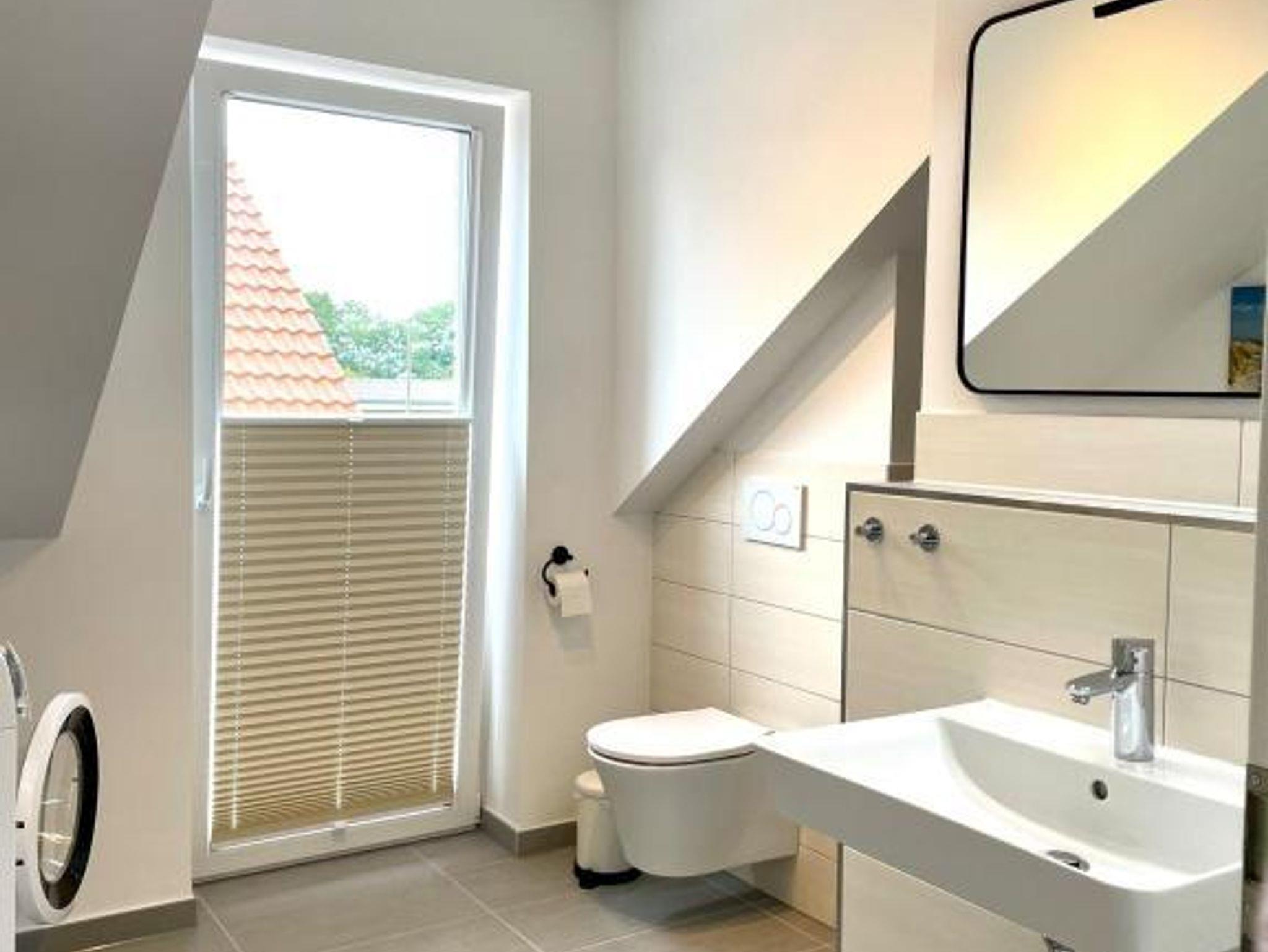 Das erste Geschoss bietet zwei nordisch dekorierte Schlafzimmer welche mit jeweils einem Doppelbett sowie Flat-TV ausgestattet sind. Ein drittes Schlafzimmer hält ein seitlich angeordnete Einzelbetten für Sie bereit.