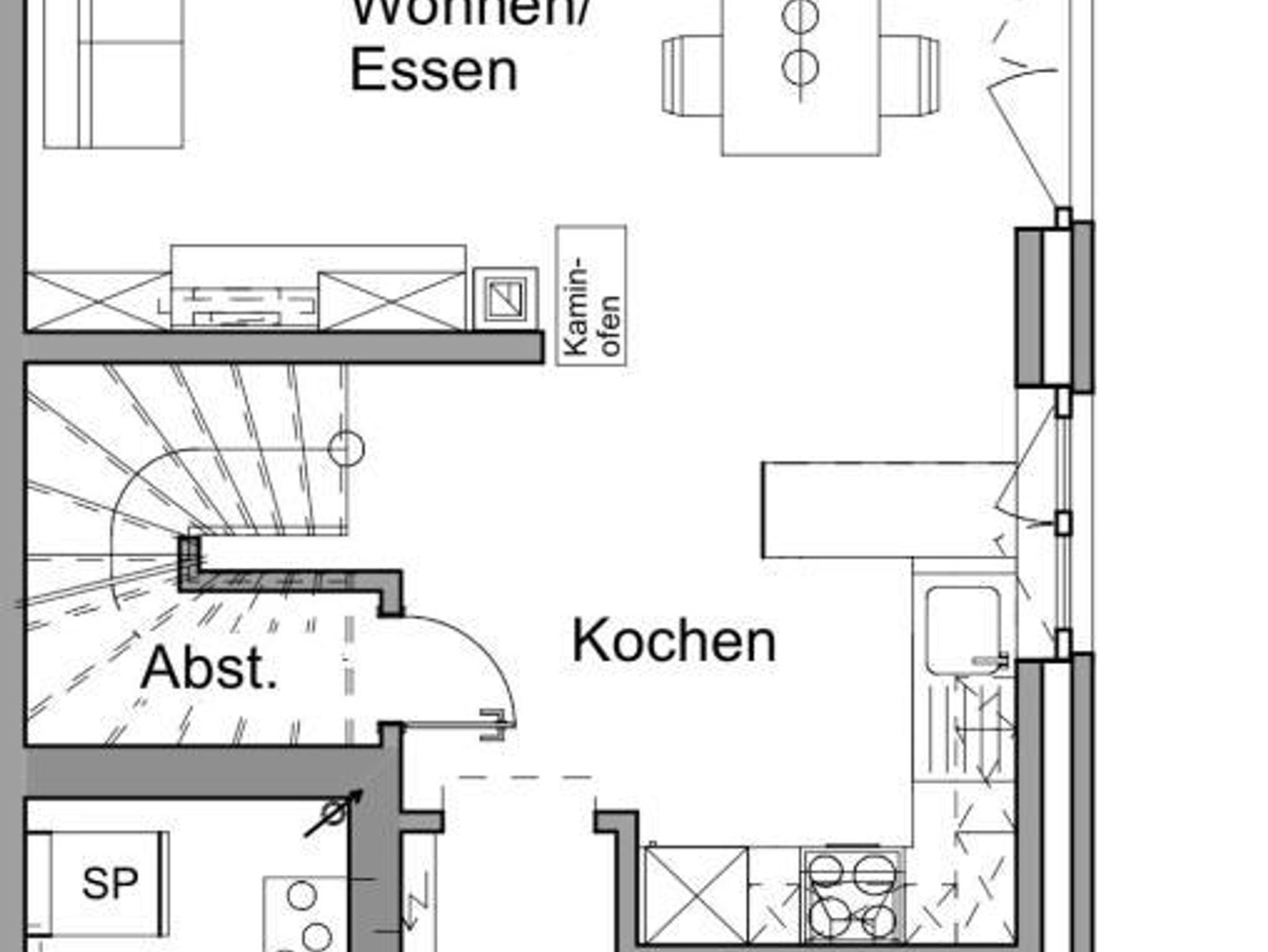 Unterdeck Das Erdgeschoss unterteilt sich in einen Wohnbereich mit integrierter, offener Küche sowie einem Gäste/ Dusch WC.
