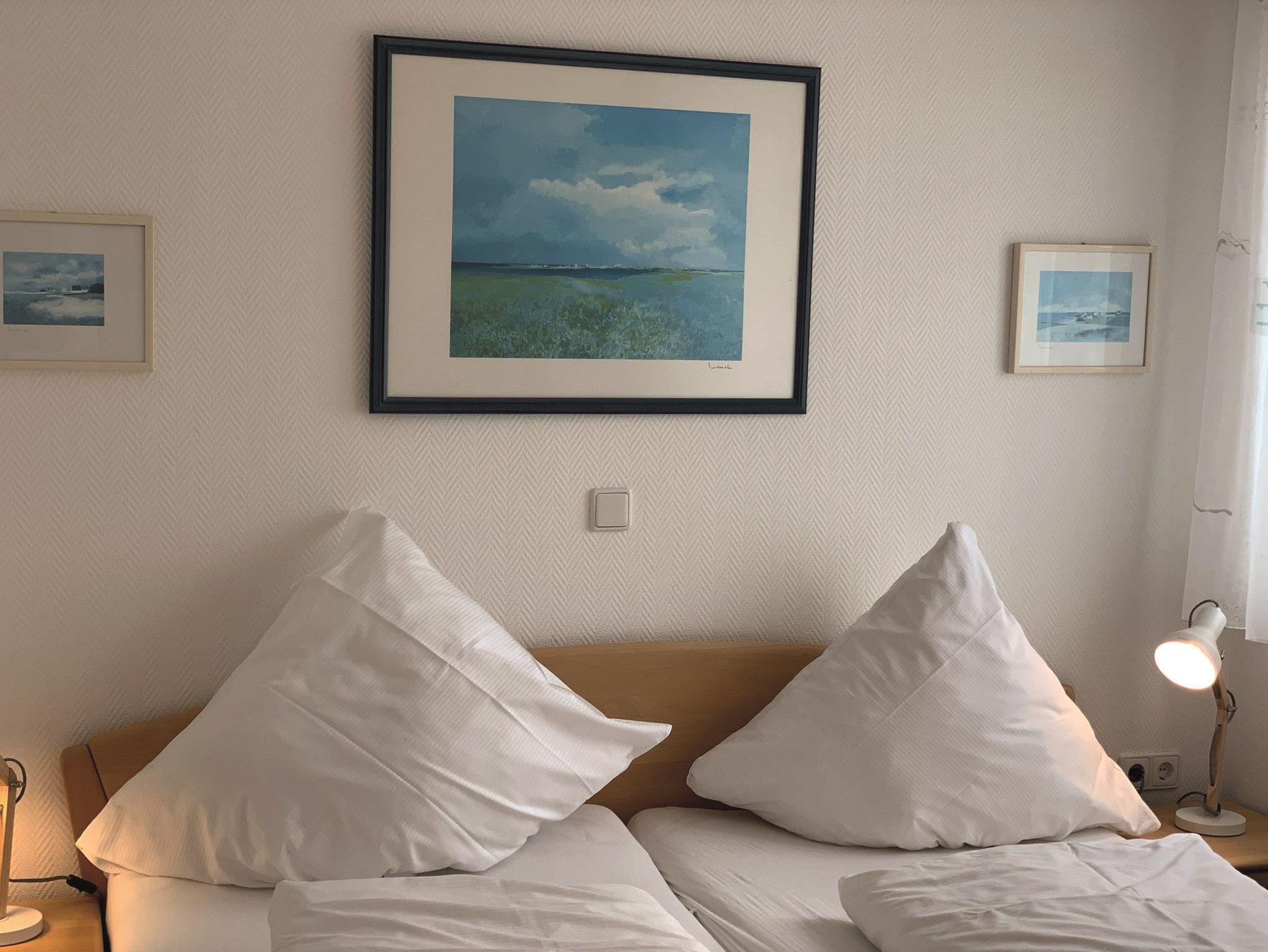 Diese 2 Zimmer Ferienwohnung befindet sich in erstklassiger Lage von St. Peter Bad direkt an der Strandpromenade und bietet Platz für 2-4 Personen. Vom Strandkorb genießen Sie einen herrlichen Ausblick über Salzwiesen, Seebrücke bis hin zum Meer. Die hochwertige und großzügig dimensionierte Ledercouch in L Form bietet hohen Sitzkomfort. Mit wenigen Handgriffen schaffen Sie bei Bedarf eine zusätzliche Schlafmöglichkeit auf einer 160 x 200 cm großen durchgehenden Bultexmatratze. Der neu gestaltete Küchenbereich ist komplett mit modernen Elektrogeräten u.a. mit Geschirrspülmaschine und Multifunktionsbackofen ausgestattet. Ausgewählte Bildmotive von SPO, eine harmonische Farbgestaltung an den Wänden in Verbindung mit einem Fußbodenbelag in Holzdielenoptik schaffen auch im Inneren der Wohnung Urlaubsgefühl pur. Der Flur und das mit einem großen Fenster ausgestattete helle Bad sind gefliest.
