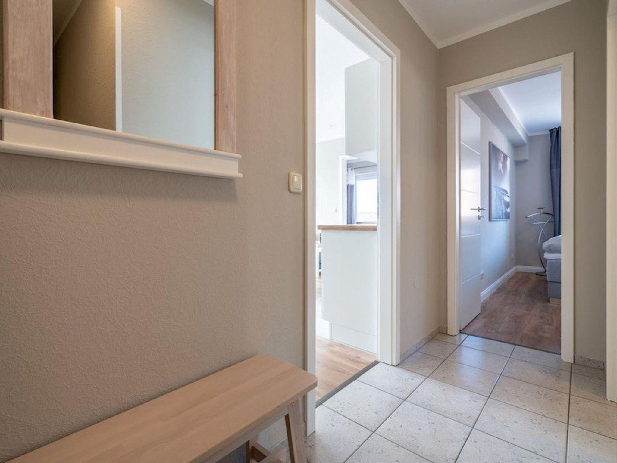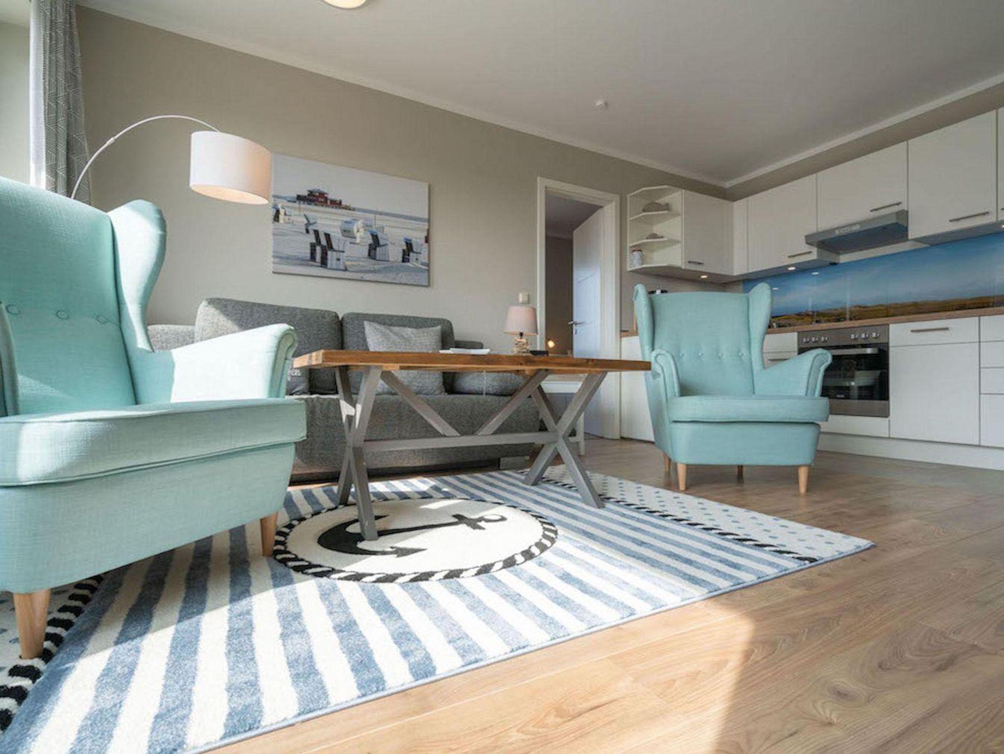 Modernes Apartment direkt hinter dem Deich in St. Peter-Ording mit Balkon und Strandkorb, nahe am Hauptstrand und Ortszentrum.