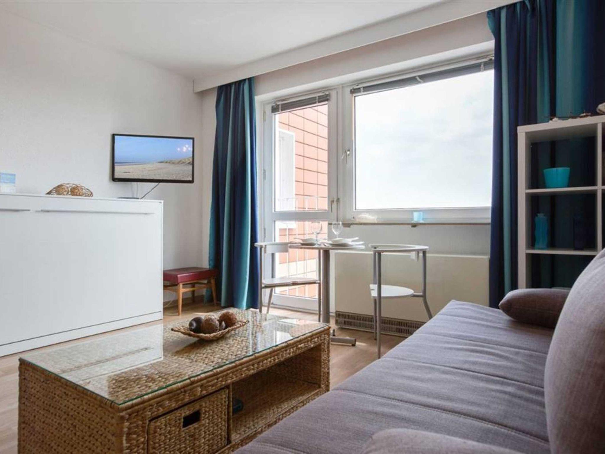Modernes Studio-Appartement mit Meerblick, strandnah und zentral in St. Peter-Ording, ideal für entspannte Tage zu zweit.
