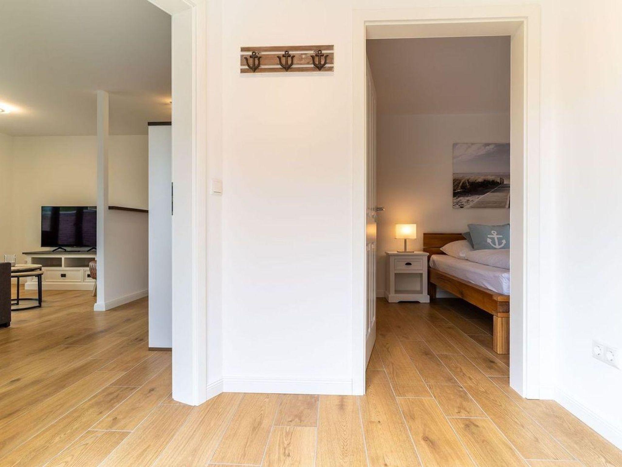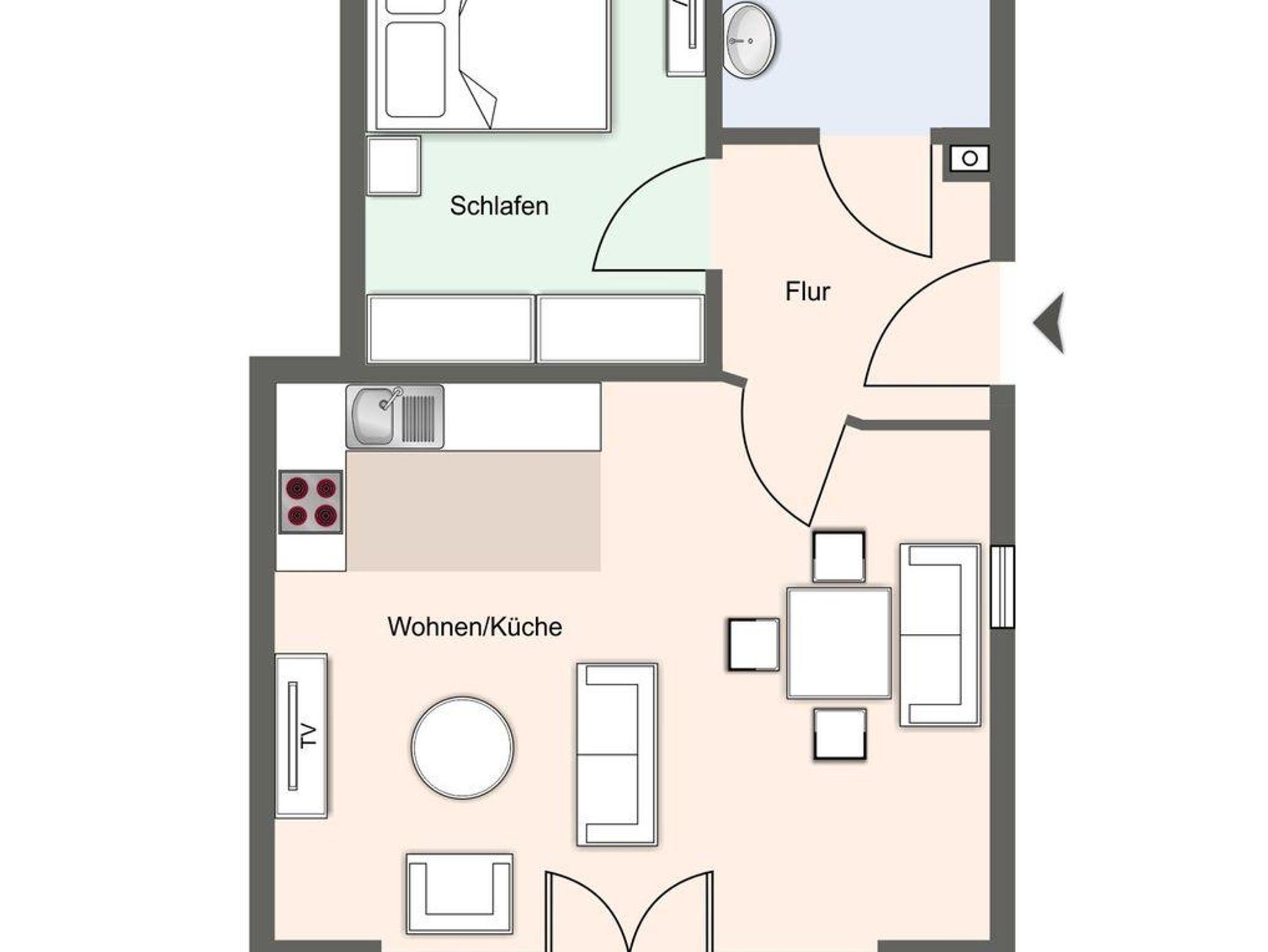 Die Wohnung befindet sich im Erdgeschoss mit einem lichtdurchfluteten Wohnraum mit TV und einer modernen Wohnküche. Die Wohnräume sind mit neuen und modernen Möbeln ausgestattet. Vom Flur gelangen Sie ins Doppelschlafzimmer mit TV. Zusätzlich gibt es im Wohnzimmer ein gemütliches Schlafsofa für eine Personen. Das Duschbad bietet genügend Platz für Ihre Utensilien. Vom Wohnzimmer gelangen Sie auf eine großzügige Terrasse. Hier können Sie wunderbar entspannen und die Seele baumeln lassen. Im Gemeinschaftskeller steht Ihnen der erste Abstellraum für Ihre Fahrräder zu Verfügung.