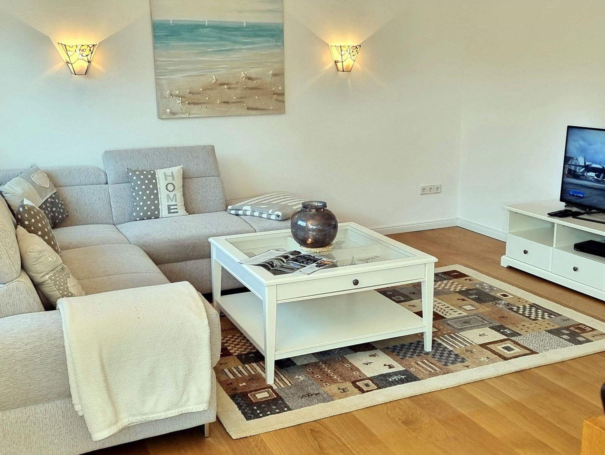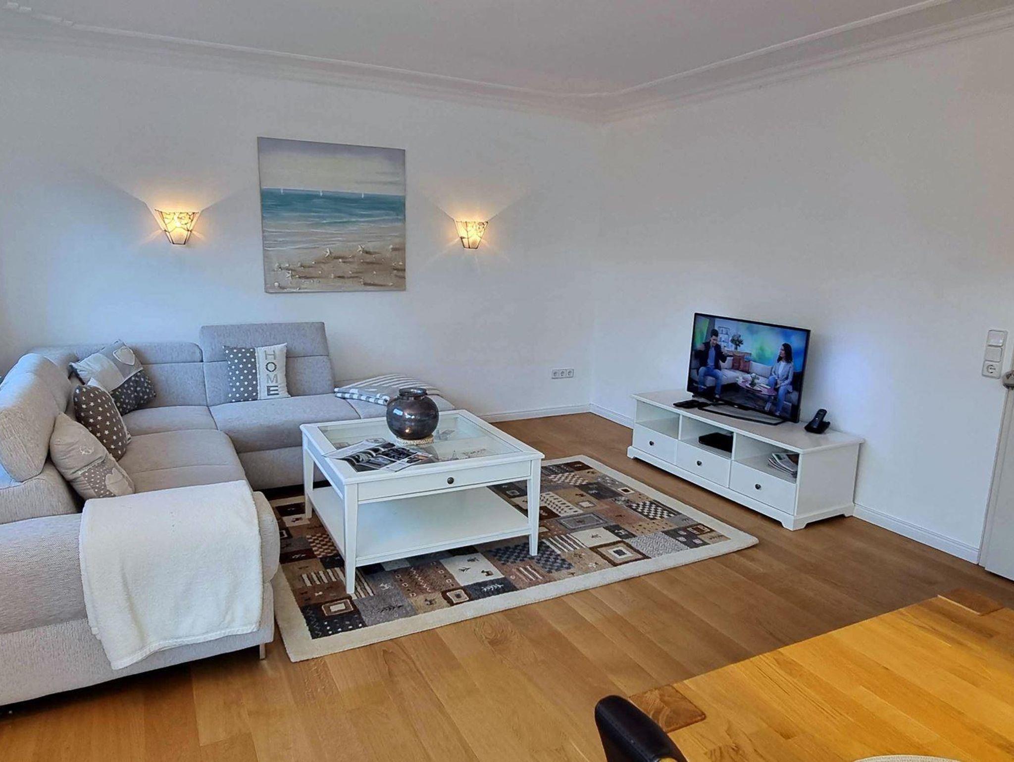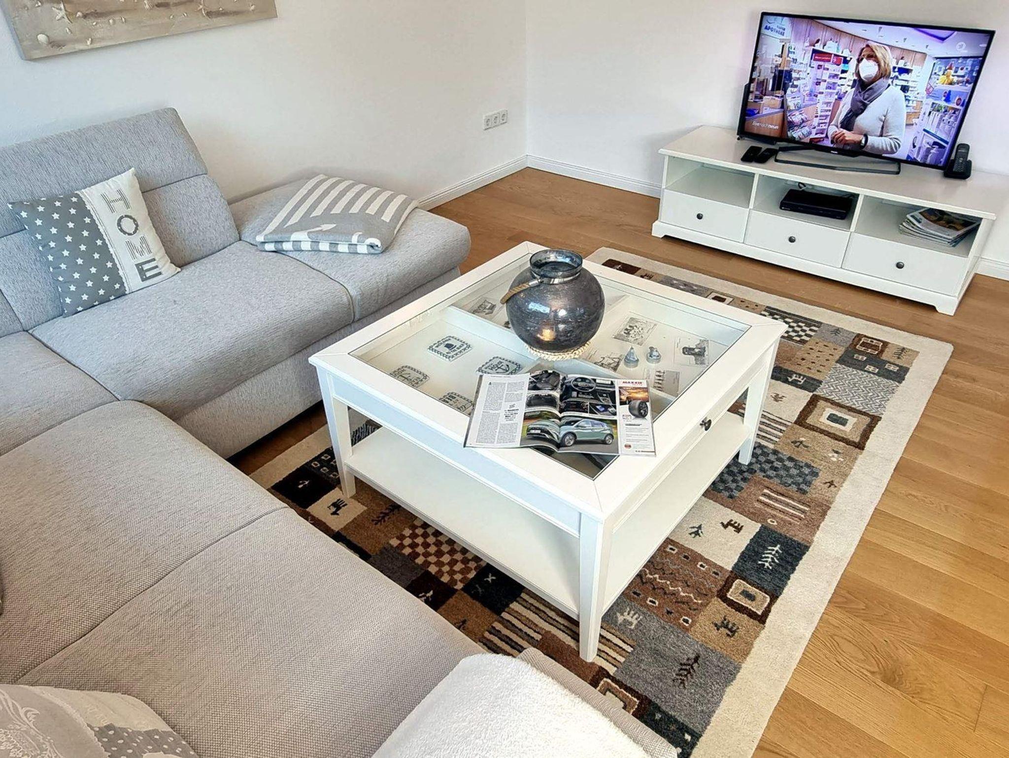 Wohnzimmer mit sehr schöner Sitzgarnitur, Flachbild-TV