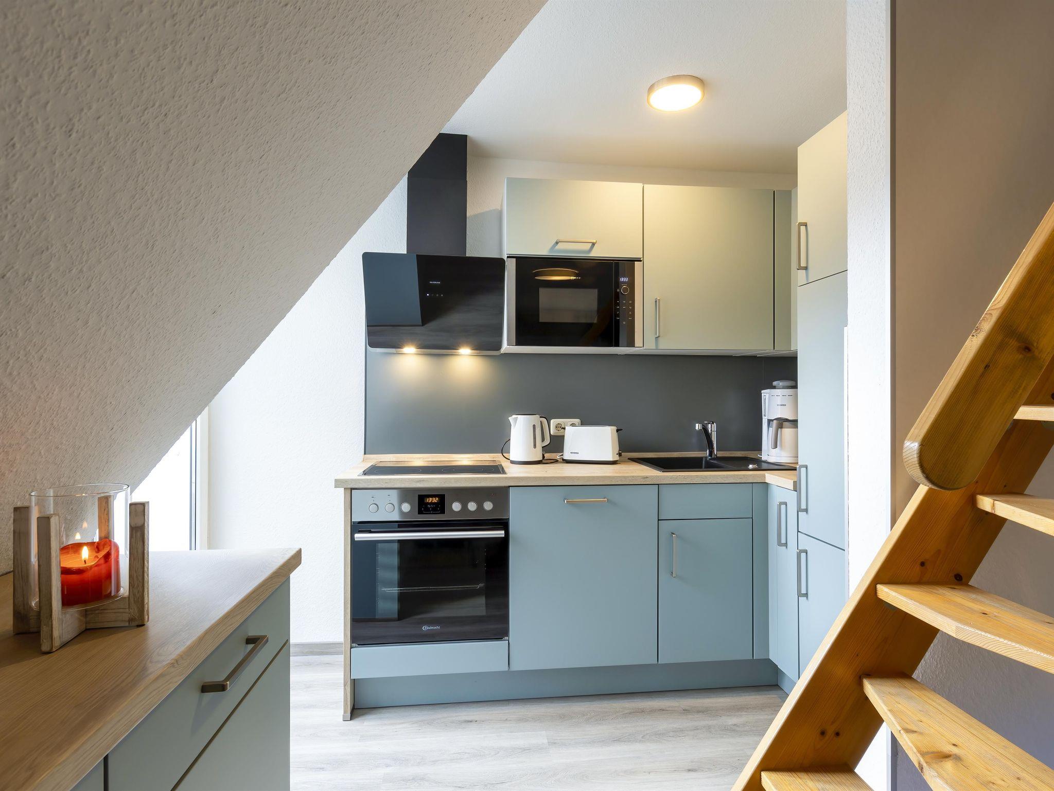 • Küchenzeile: Voll ausgestattet mit Cerankochfeld, Backofen, Geschirrspüler, Mikrowelle, Toaster, Kaffeemaschine und Wasserkocher – alles für Ihre individuelle Selbstverpflegung.