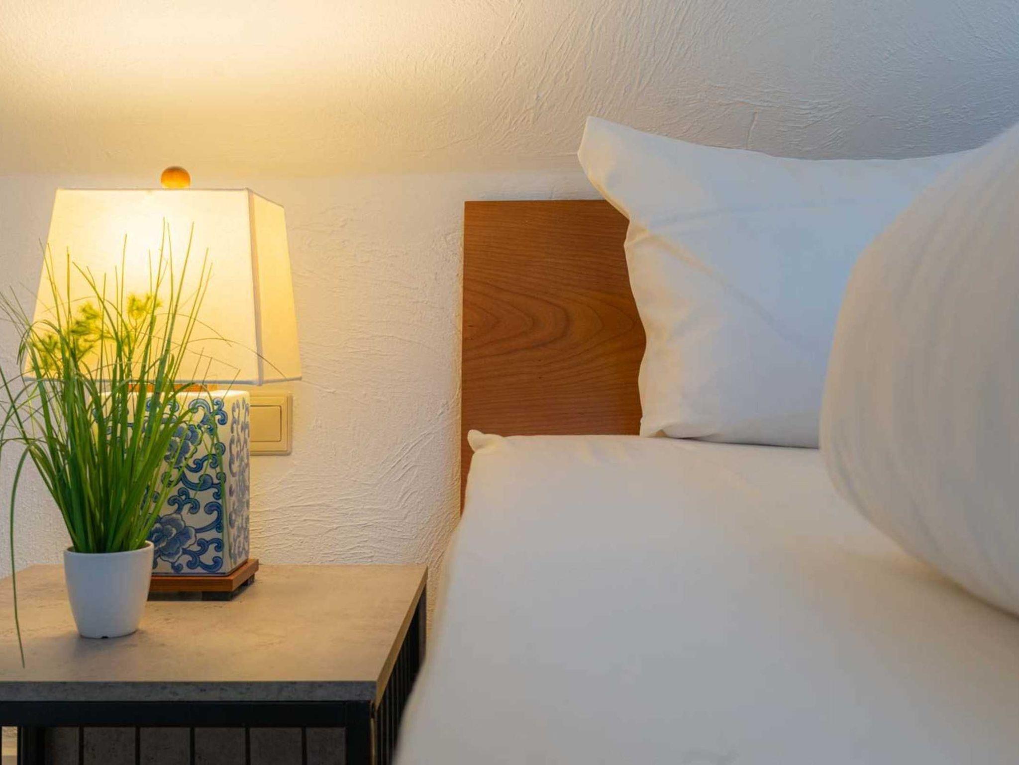 Tiefgaragen-Stellplatz (max. Höhe 190cm, Breite 220cm) und überdachte Fahrradabstellmöglichkeiten (links am Haus) vorhanden. Gemeinschaftliche Sauna vorhanden. Waschmaschine und Trockner gegen Gebühr. Kostenloses WLAN.