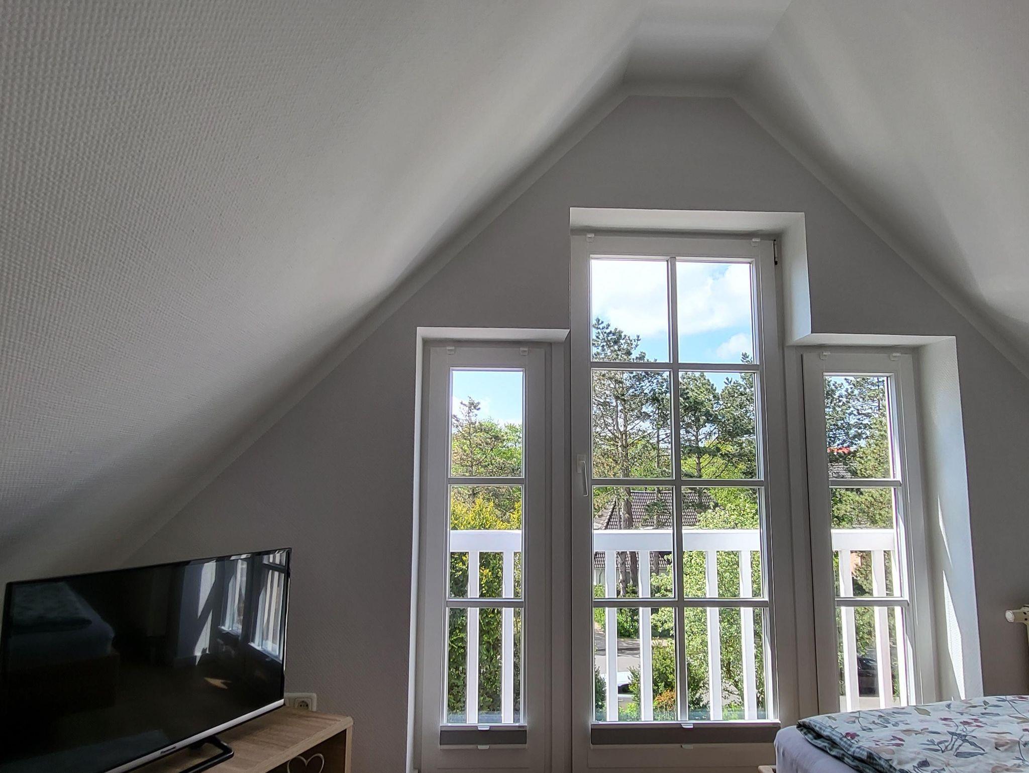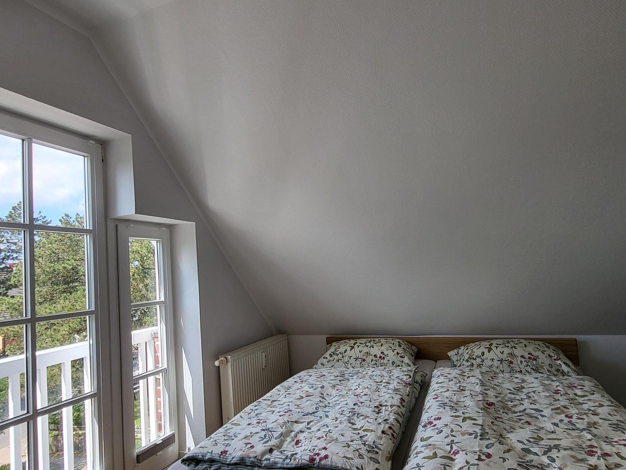 Die Wohnung 7 befindet sich im Ober- und Dachgeschoss und verfügt über 3 Zimmer für 2 Personen und ist 47 m² groß. Es ist ein Süd-West Balkon vorhanden, 2024 modernisiert und neu eingerichtet.