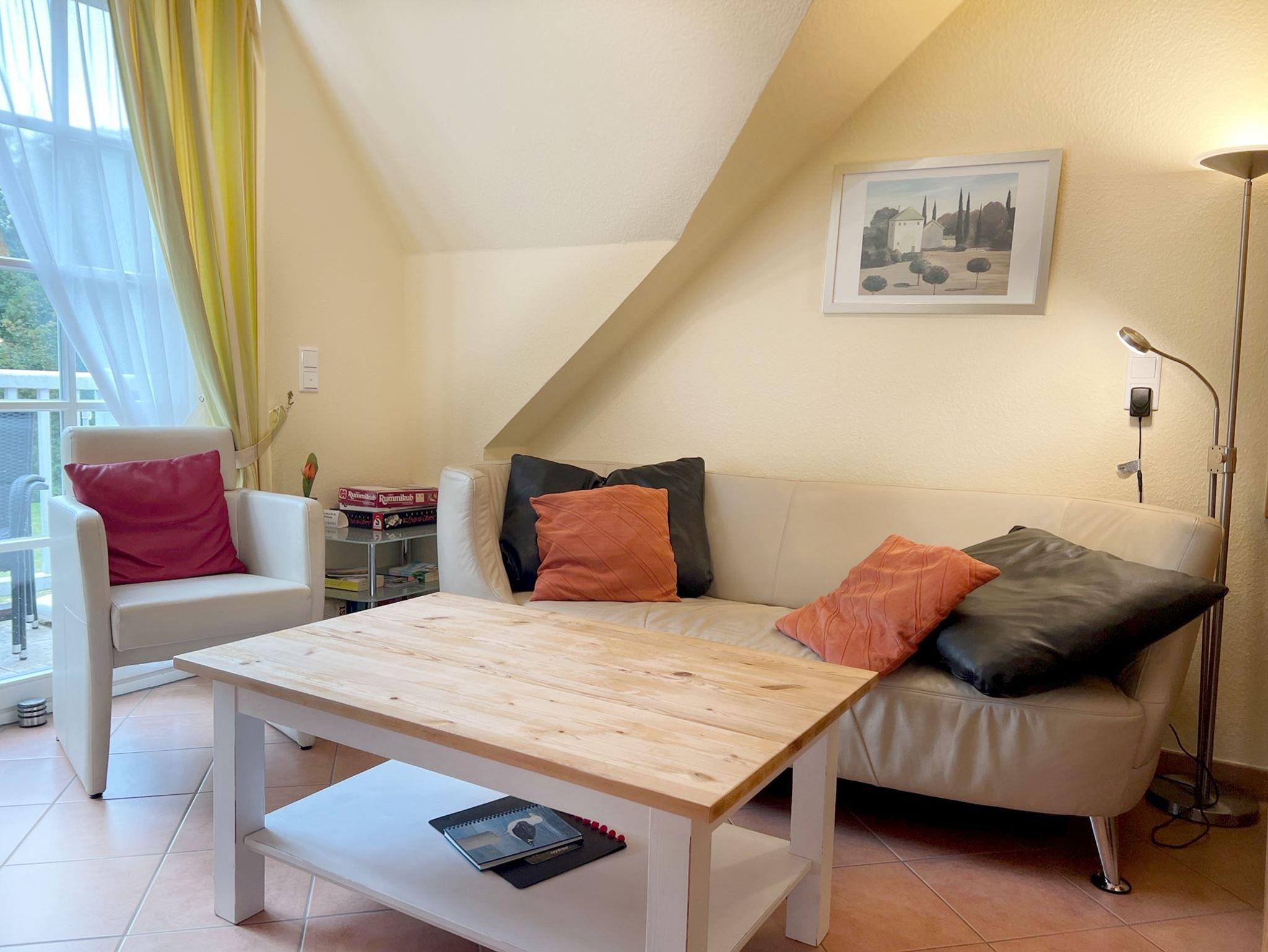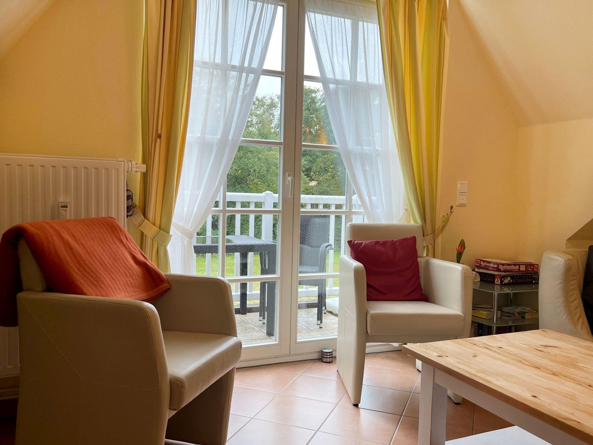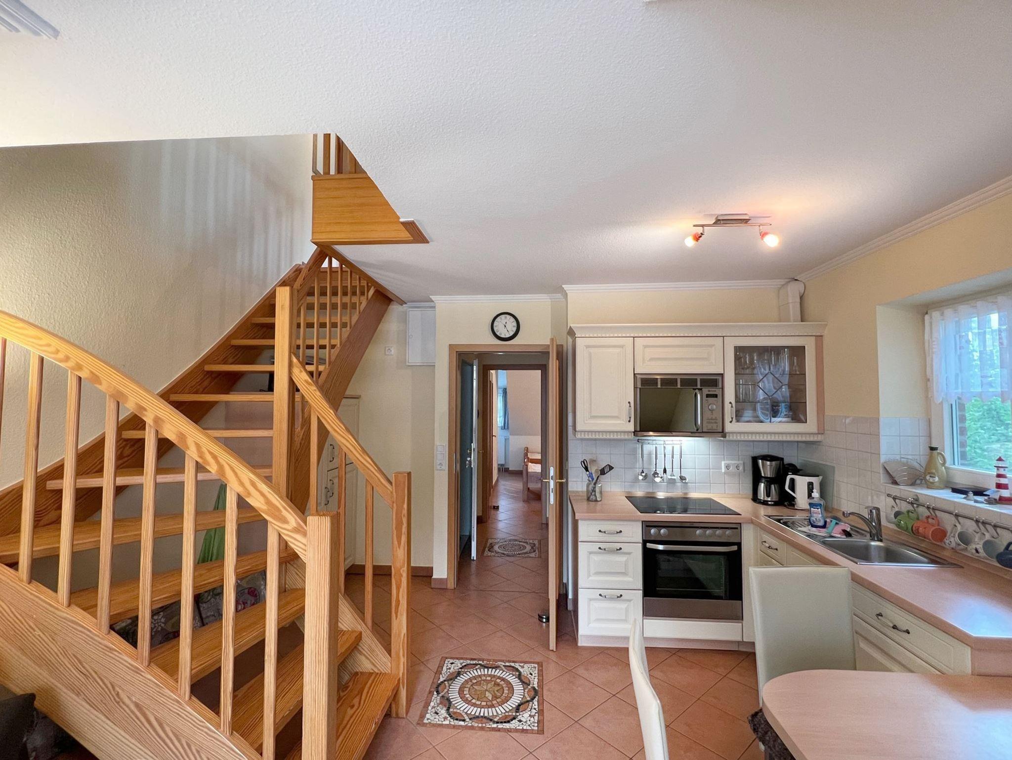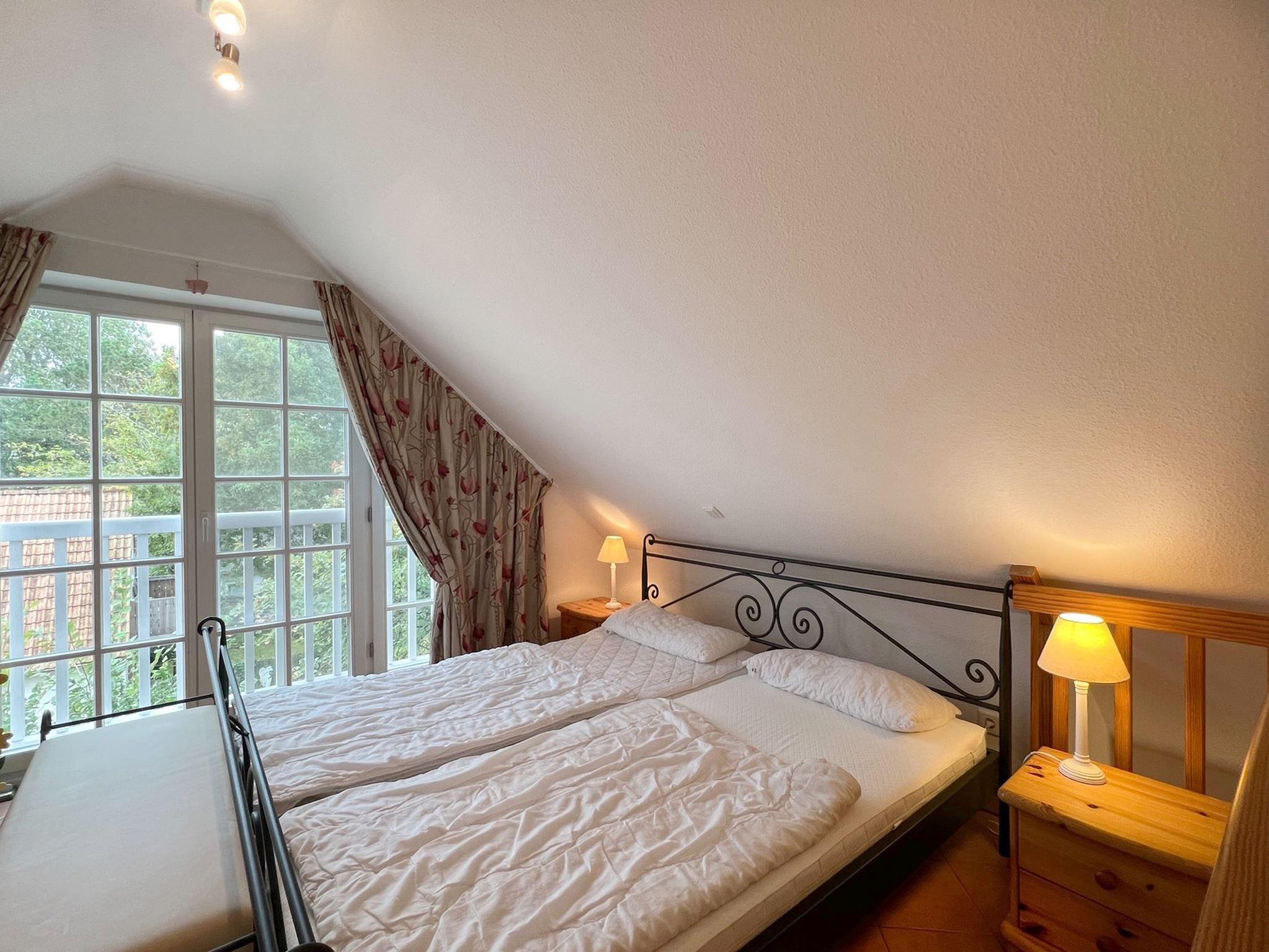 Erleben Sie einen erholsamen Urlaub in dieser schönen, allergikergeigneten Ferienwohnung für bis zu 4 Personen. Die Whg. erstreckt sich über 2 Etagen, das 1. Obergeschoß und das Staffelgeschoß. In der unteren Ebene befindet sich das helle Wohnzimmer, ein Schlafzimmer mit Einzelbetten und das geräumige Duschbad. An das Wohnzimmer schließt sich der möblierte Südbalkon an, hier finden Sie nach einem langen Strandtag die nötige Ruhe. Im Staffelgeschoß finden Sie ein großzügiges Schlafzimmer mit einem gemütlichen Doppelbett und als zusätzliche Annehmlichkeit ein weiteres WC. Sämtliche Fenster sind mit einem Insektenschutz ausgestattet. Fahrräder können im Keller abgestellt werden und ein PKW-Stellplatz befindet sich auf dem Grundstück, Nr. 14