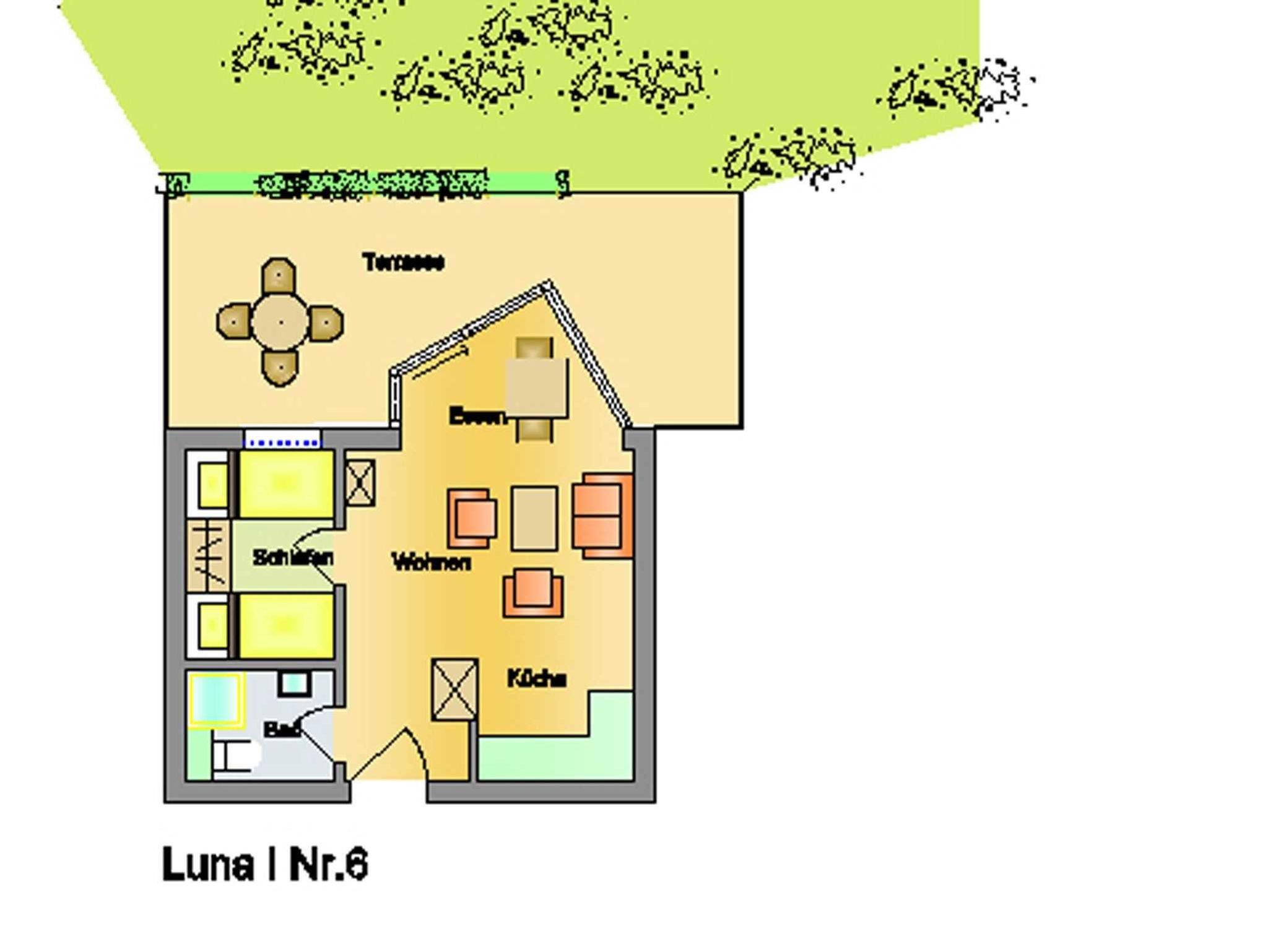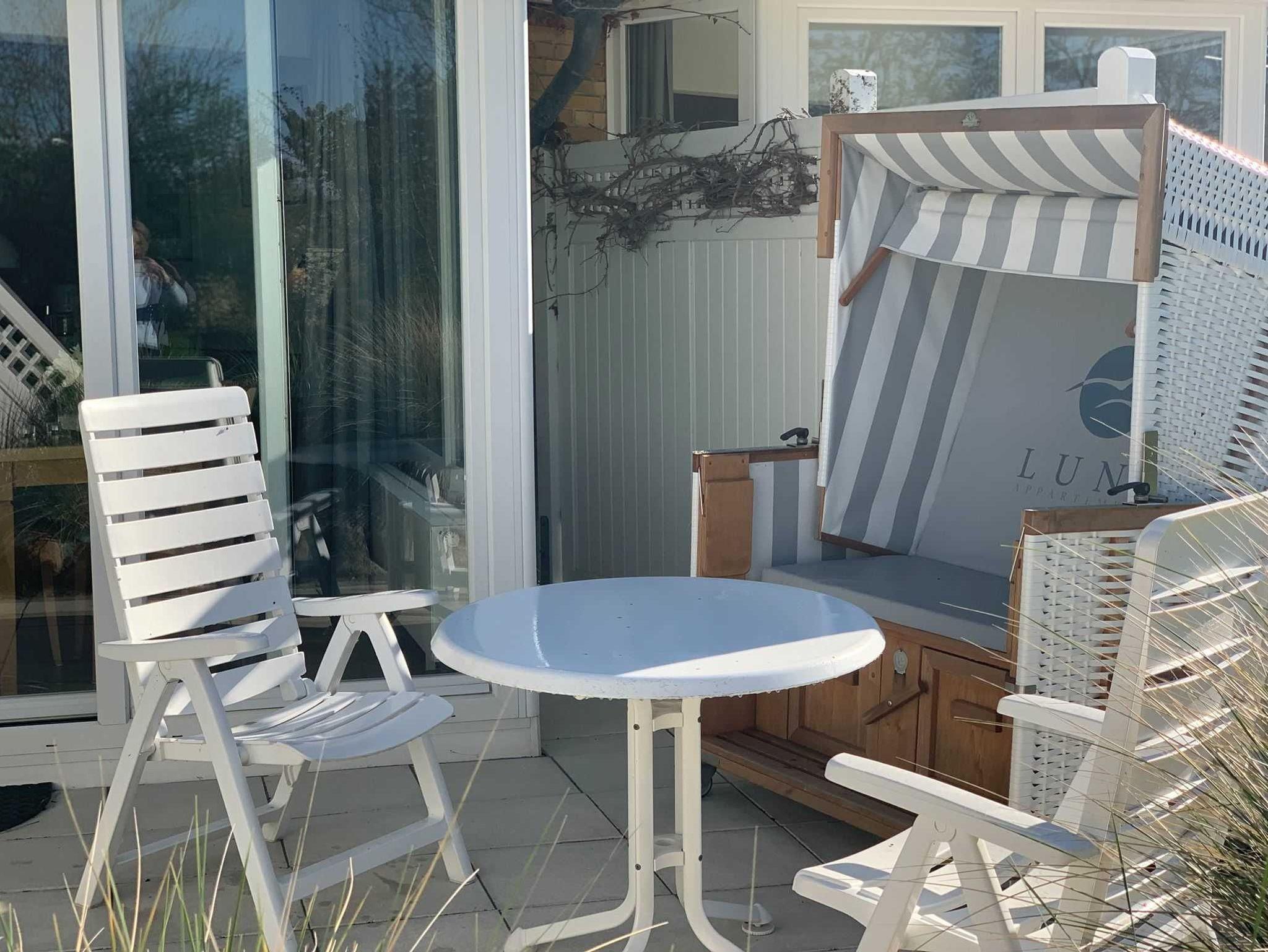 Die Wohnung 6, im Haus Luna I, liegt im Erdgeschoß und ist für 1 - 2 Personen ein herrliches Urlaubsquartier. Im Eingangsbereich finden Sie eine Garderobe und 1 Duschbad mit WC und Waschbecken. Der gemütliche Wohn-Essbereich verfügt über eine offene, umfangreich ausgestattete Küche, in der auch das Kochen im Urlaub Spaß macht. Der Essbereich befindet sich im hellen, vorgelagerten Wintergarten, wo Sie einen direkter Zugang zur Terrasse mit Strandkorb und Gartenmöbeln haben. Hier lässt es sich wunderbar in guter Nordseeluft entspannen. Erholsamen Schlaf bekommen Sie im Schlafzimmer mit 2 Einzelbetten (90x200cm).