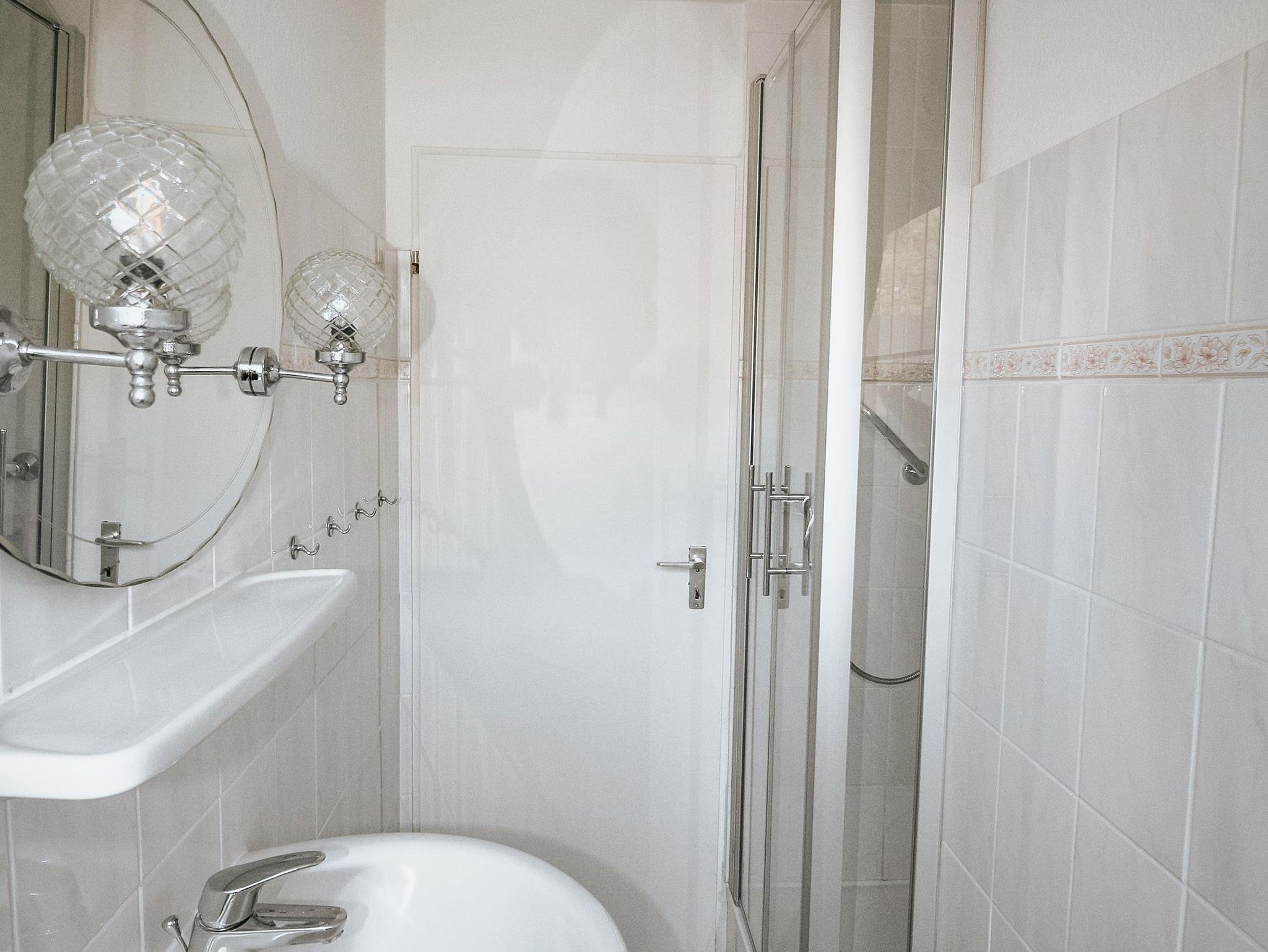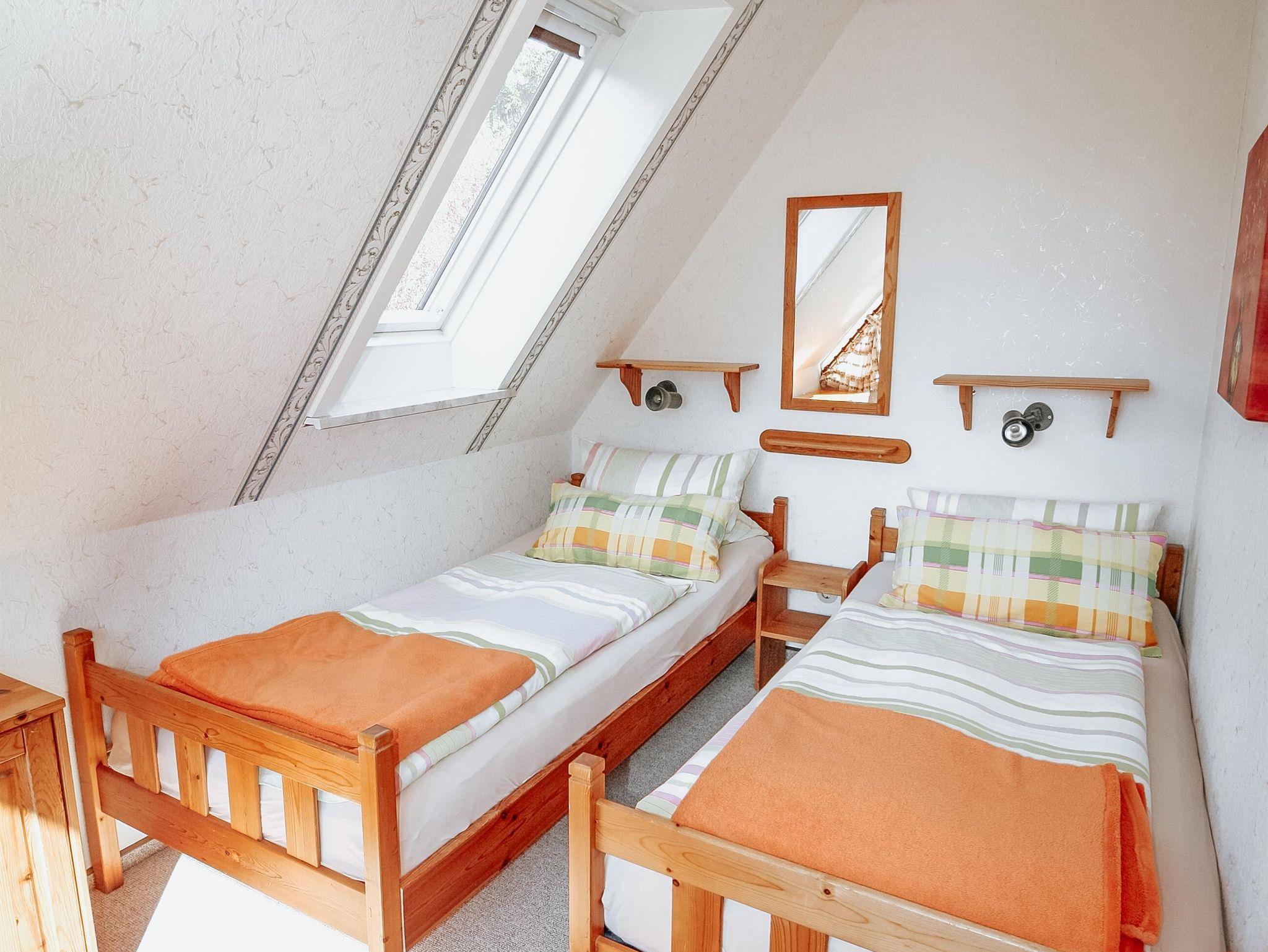 2 getrennte Schlafzimmer mit jeweils 2 Einzelbetten und einem Bad mit Dusche und WC