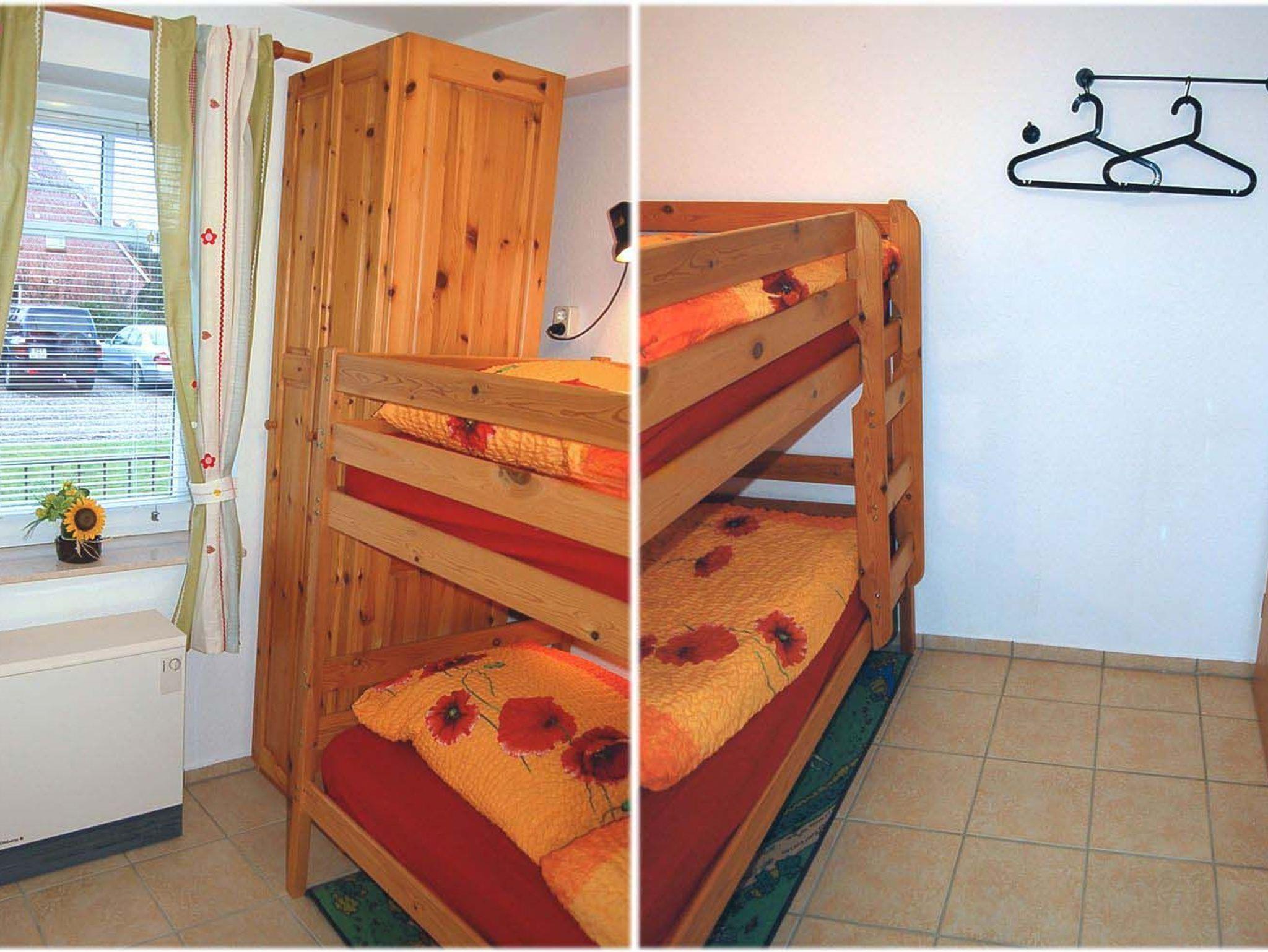 Schlafzimmer 2: E-Heizung, Etagenbett, Garderobe, Kleiderschrank, Kofferradio