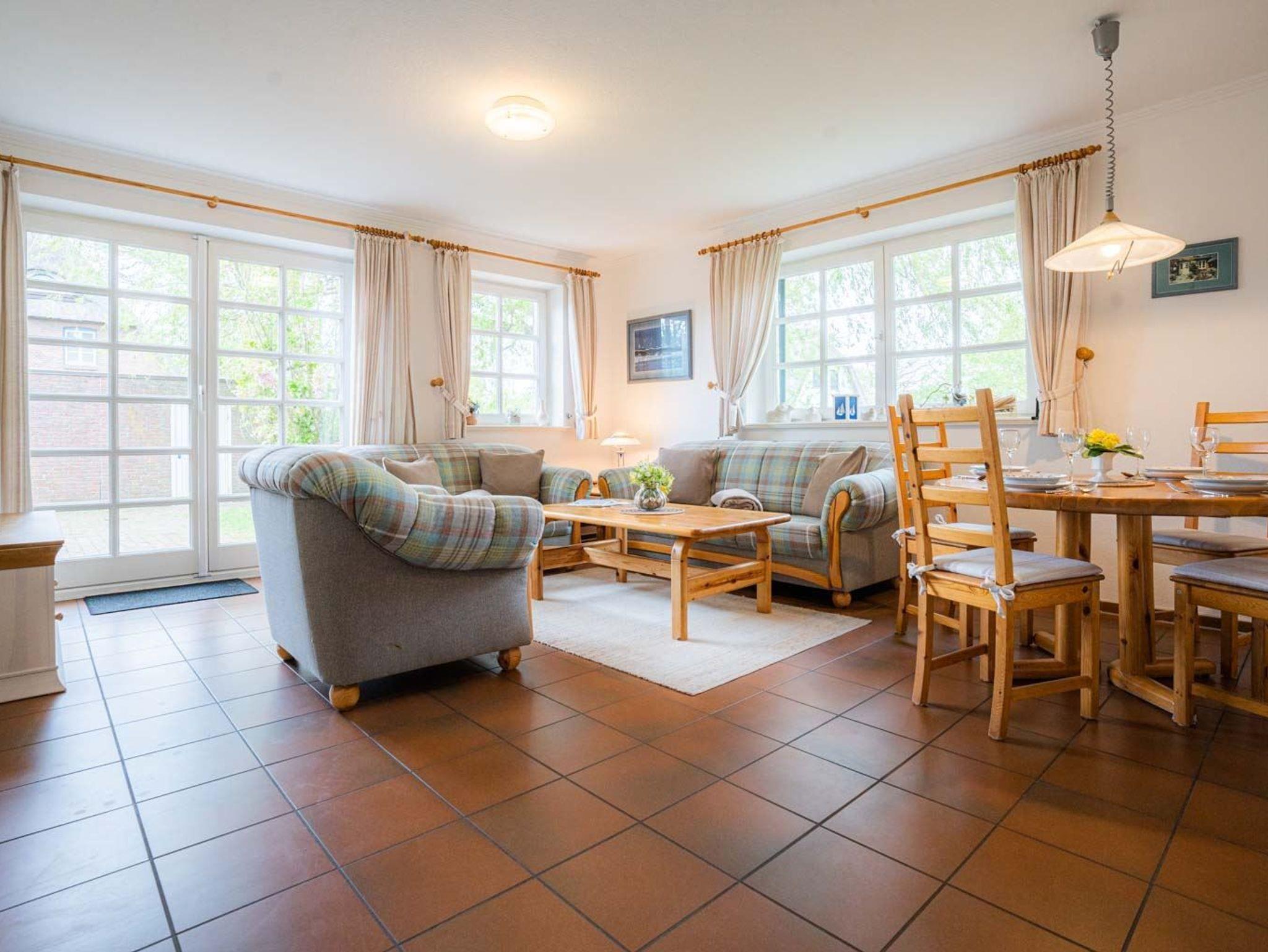 Wohnzimmer mit 2 Sofas (für 3 und für 2 Personen), Sessel, TV (Kabel), BluRay-Player und Radio mit CD-Player. Direkter Zugang zur möblierten, windgeschützten Gartenterrasse nach Nordwesten mit Strandkorb und dem schönen Gartengrundstück. Hauswirtschaftsraum mit Waschmaschine, Bügelset und Staubsauger.