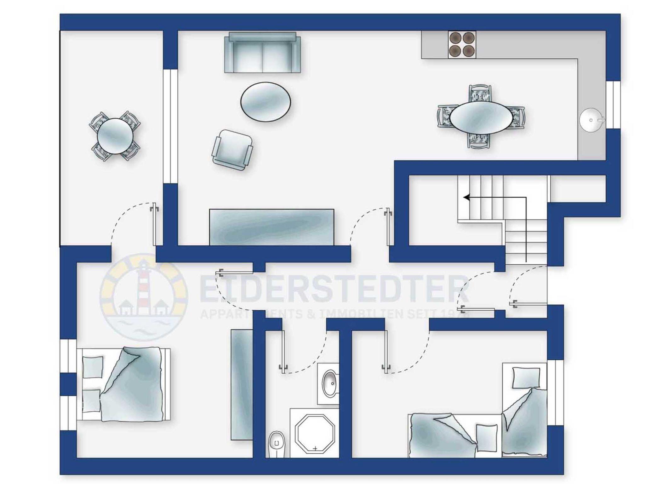 Gemütliche 3-Zimmer-Ferienwohnung mit Terrasse nahe Strand und Zentrum in St. Peter-Ording.