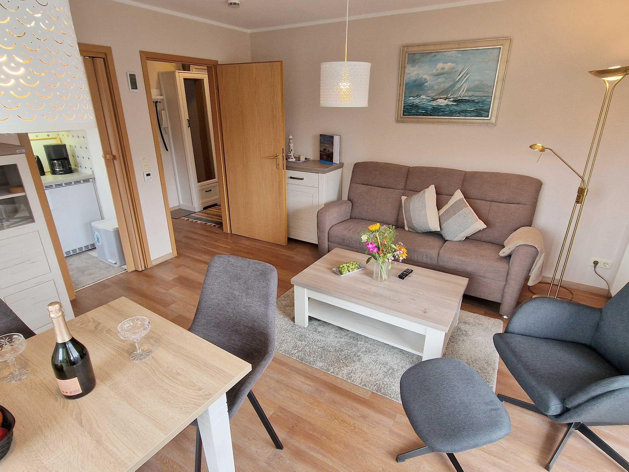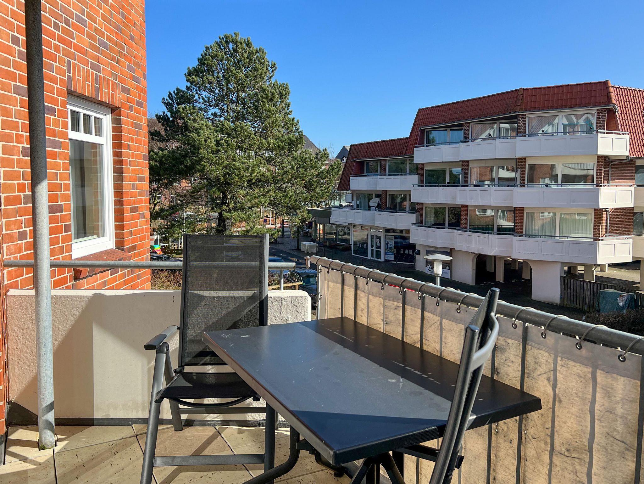 Gemütliche 2-Zimmer-Ferienwohnung mit sonnigem Balkon und Strandkorb in St. Peter-Ording, zentral im Ortsteil Bad gelegen.
