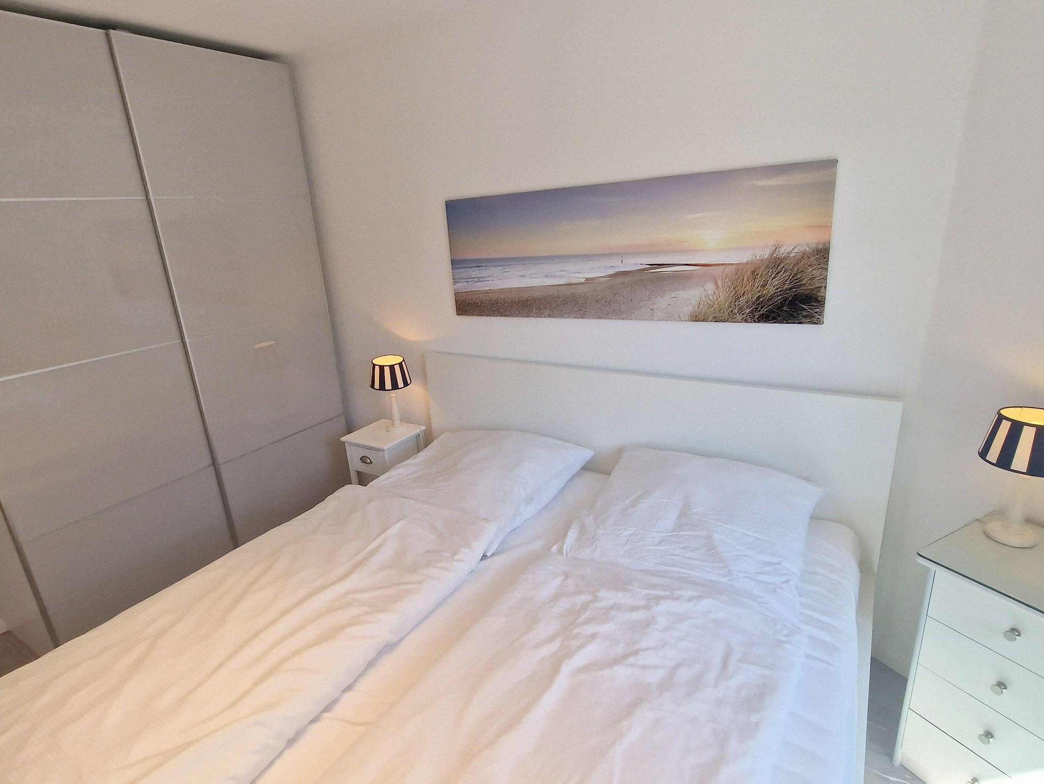 Die gemütliche 2-Zimmer-Ferienwohnung hat einen großen, sonnigen Süd-West-Balkon mit Strandkorb. Tagsüber können Sie es sich im Wohnzimmer gemütlich machen und abends im Doppelbett im Schlafzimmer erholen. In der Küche finden Sie ein 4-Platten-Ceranfeld und Backofen. Ein Geschirrspüler und der Kühlschrank mit Gefrierfach vervollständigt das Ganze. Das modernisierte Bad ist schön hell gefliest.