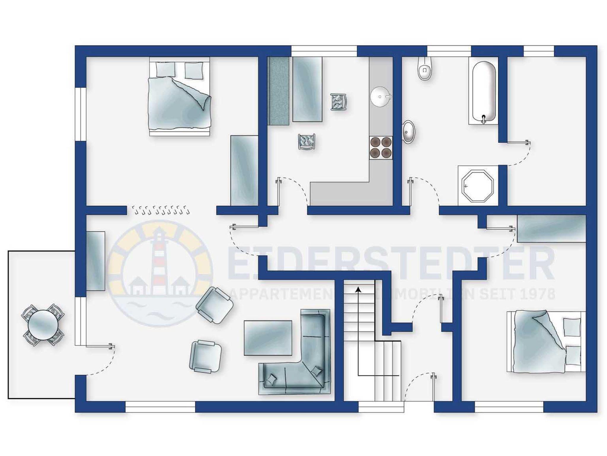Gemütliche 3-Zimmer-Ferienwohnung mit Gartenterrasse in ruhiger Lage von St. Peter-Ording.