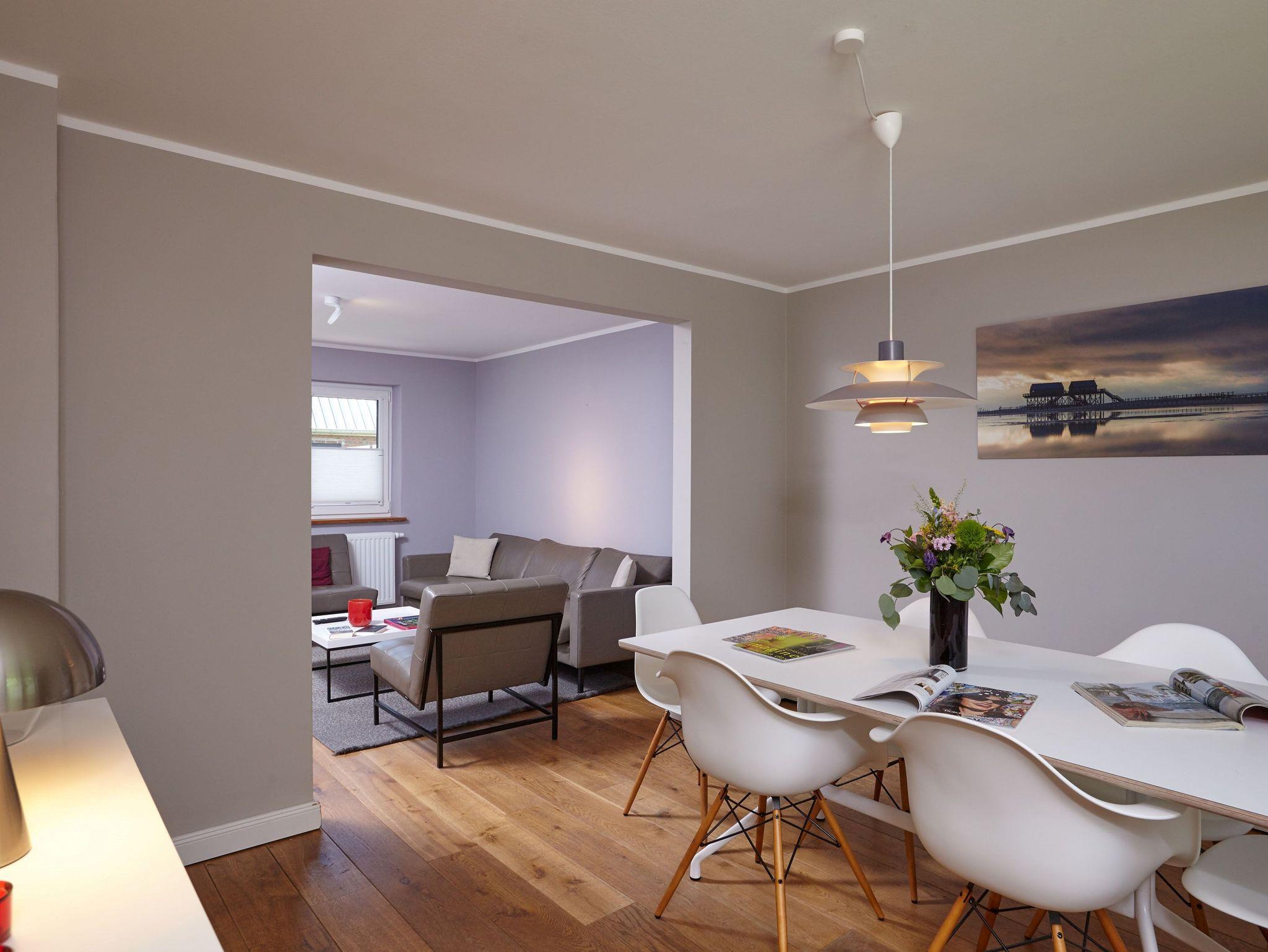 Sehr geschmackvoll eingerichtet. Mit 3 Schlafzimmern, 2 Duschbädern und einer gut ausgestatteten Küche. Das Ferienhaus wurde vom Deutschen Tourismusverband mit 5* Sternen ausgezeichnet. Es ist nur 300m vom Deich am Südstrand gelegen. Ideal für die ganze Familie ider einfach nur mit Freunden.