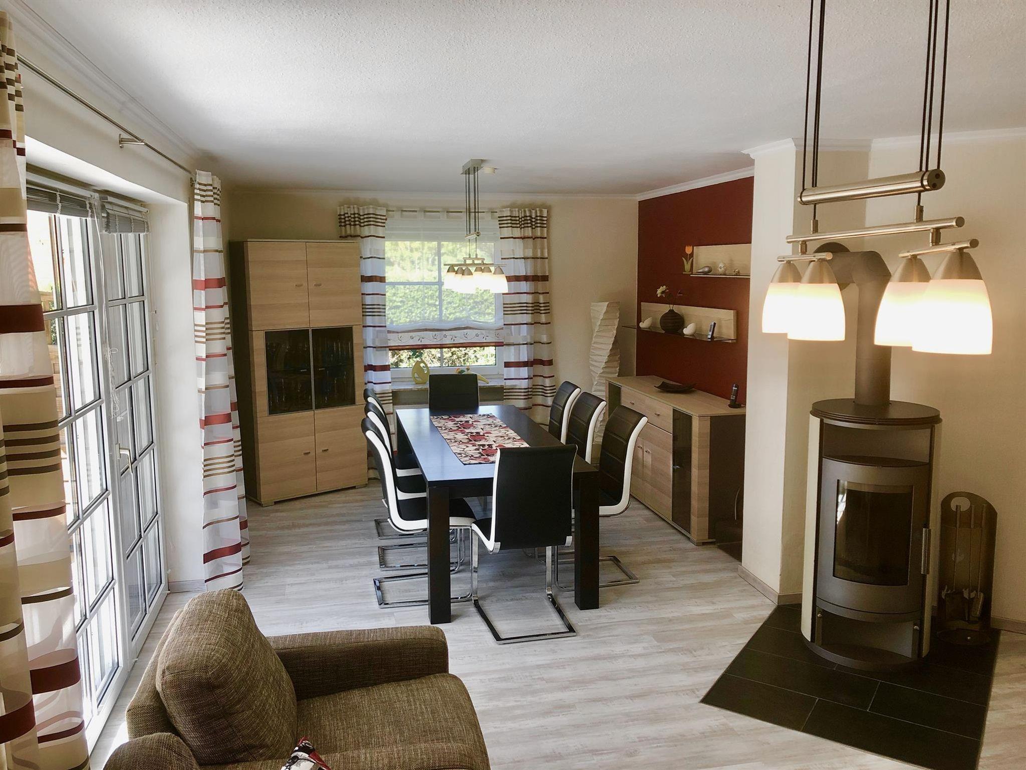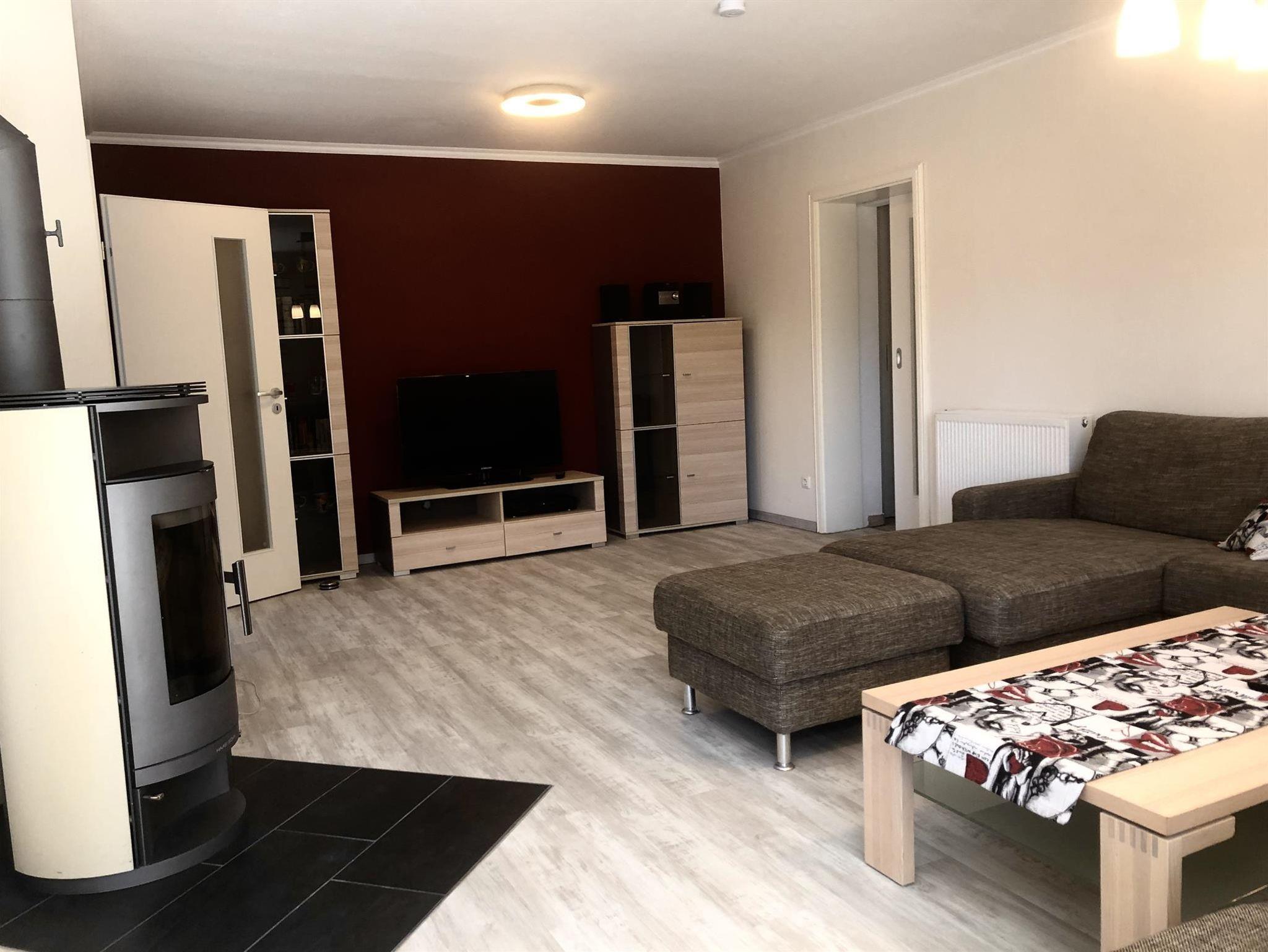 Ein Ofen im Wohnzimmer und zusätzliche Fußbodenheizung in allen Räume sorgen vom Herbst bis zum Frühjahr für eine angenehme Wärme.