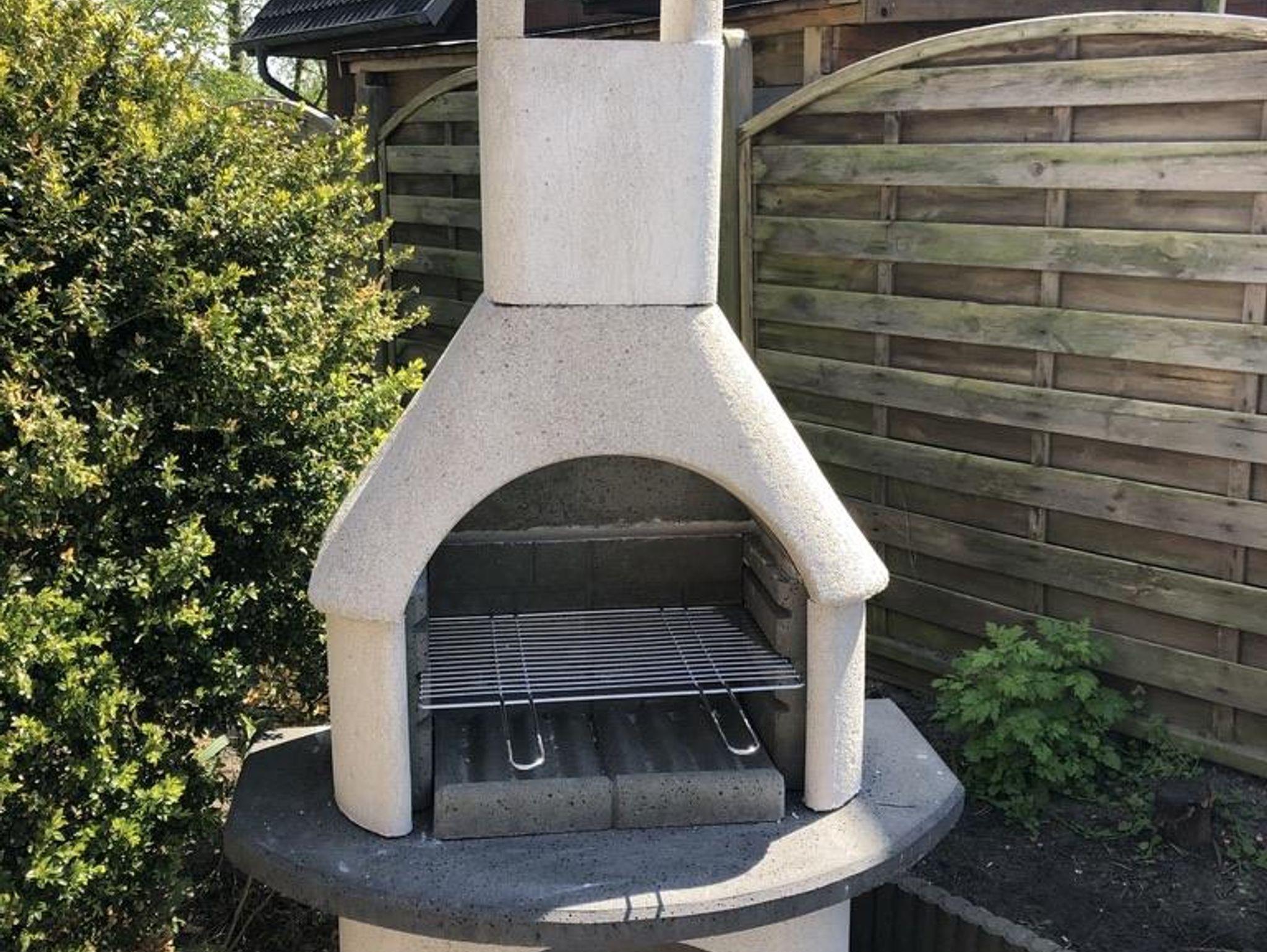 Die nach Süden gelegene Terrasse mit Gartenmöbeln und gemauertem Grill / Kamin ist vom Wohn- und Essbereich zu betreten.