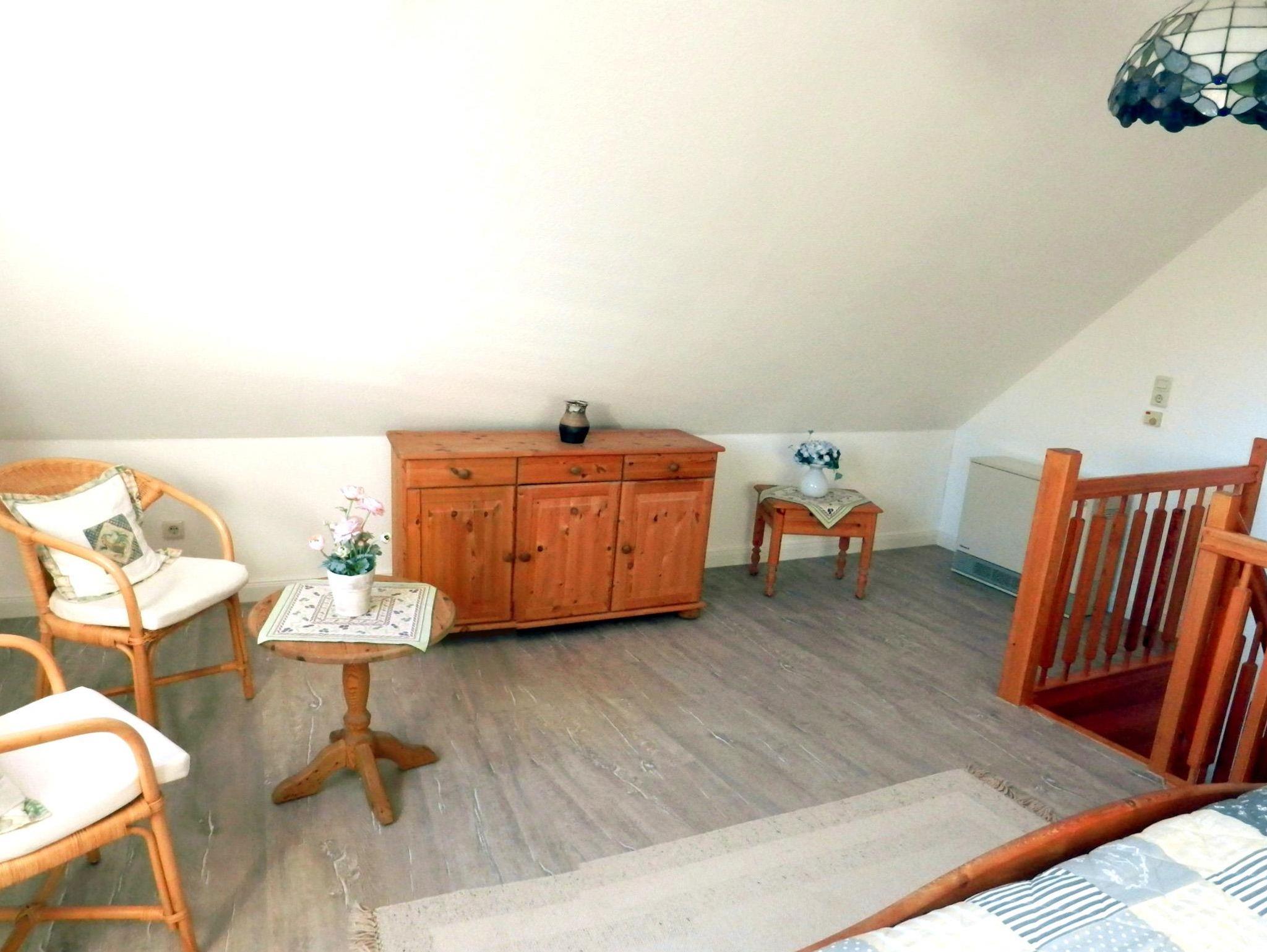 Lage: Westlage, 1. Obergeschoss und Dachgeschoss, ruhig, Ortsrand, Bahnhof 1000 m, Einkaufen 2 km, Kurzentrum 1,5 km, Schwimmbad 1,5 km, Ortsteil Bad bzw. Ortsrand Dorf