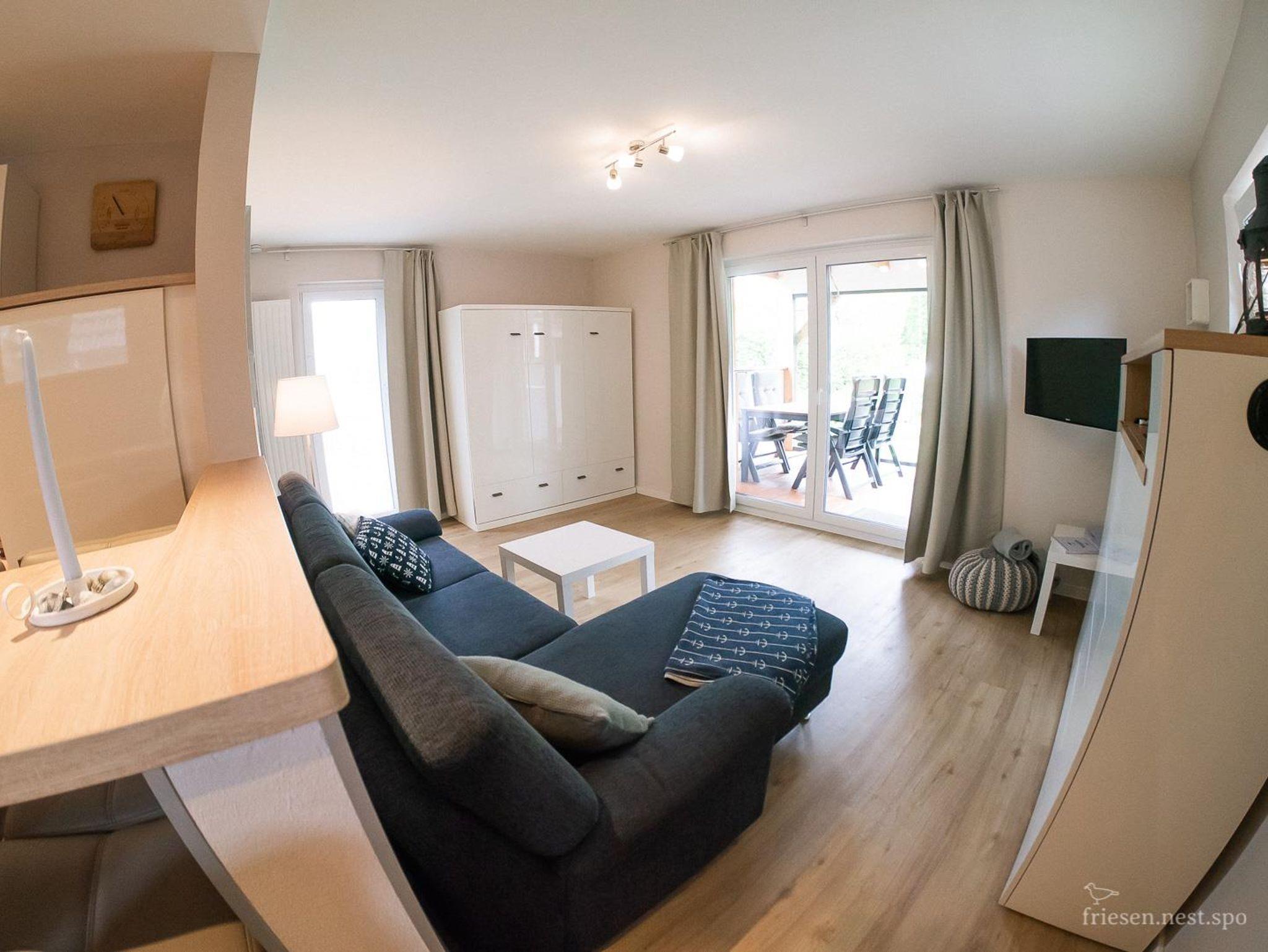 Die Ferienwohnung friesen.nest liegt im EG in der Friesenstrasse 16. Die Wohnung wurde komplett neu saniert und möbliert. Sie ist bestens geeignet für Paare. Die Einrichtung wurde im Rahmen der Sanierung des gesamten Gebäudes geschmackvoll erneuert. Ein schönes großzügiges Badezimmer (6,6m²) sowie eine Einbauküche mit Umluftherd, Geschirrspüler und Kühlschrank sowie komfortablen Sitzmöbeln runden das Angebot ab. Besonders gelungen sind die beiden Terrassen, die eine überdacht und die Südterrasse mit Strandkorb im 160m² großem Garten.