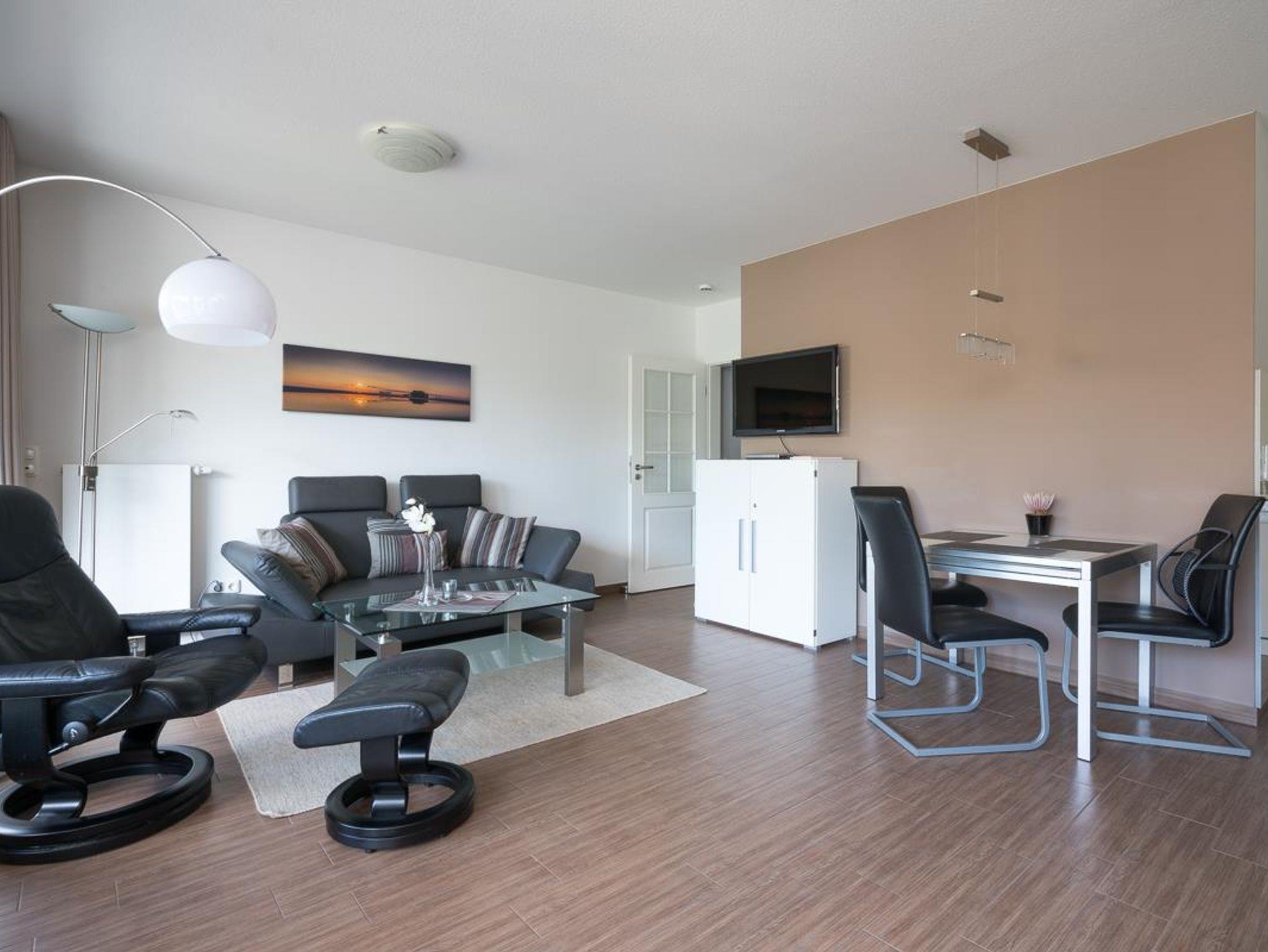 Modernes 2-Zimmer-Appartement am Waldrand von St. Peter-Ording mit exklusiver Ausstattung und Balkon.