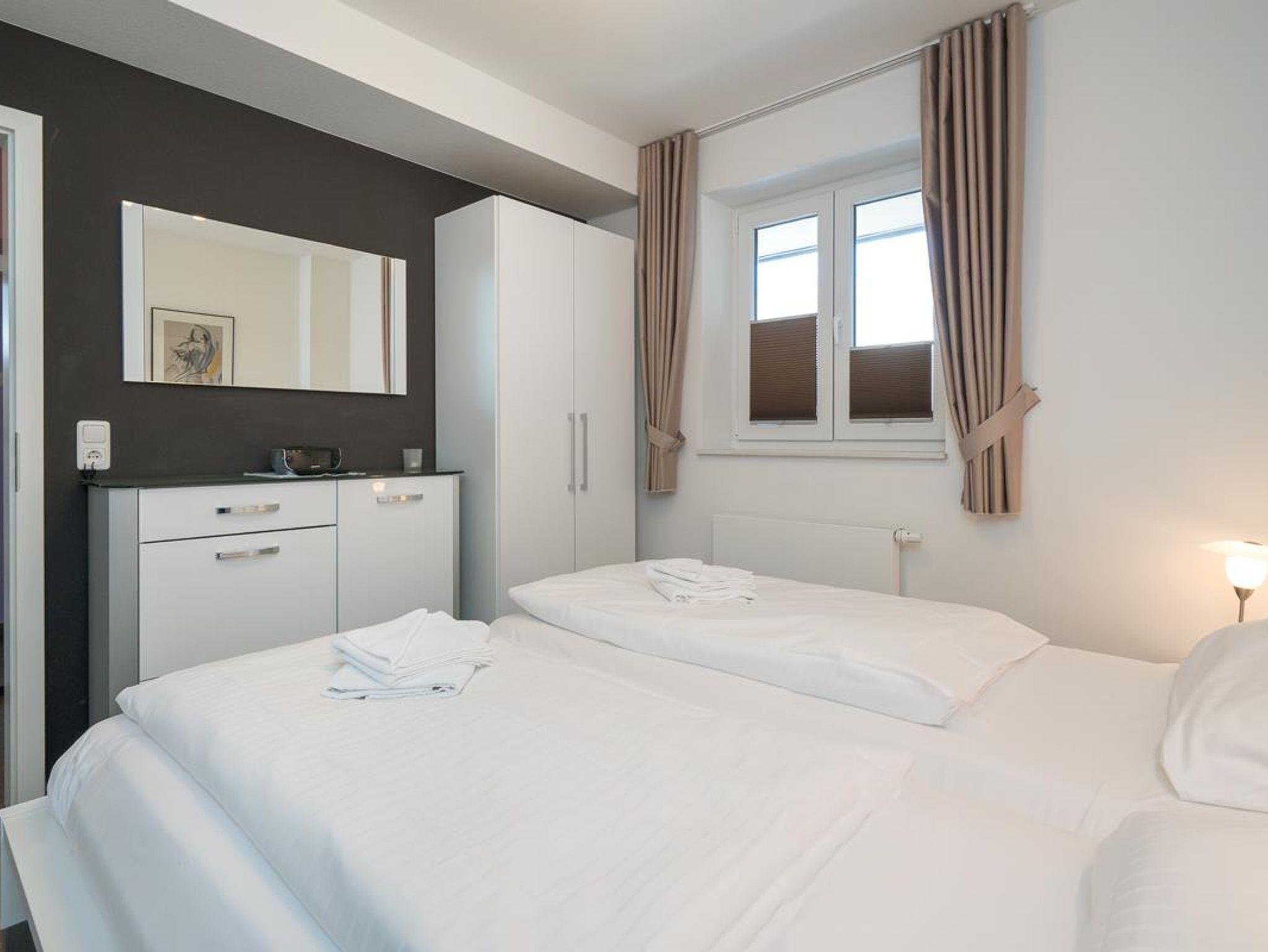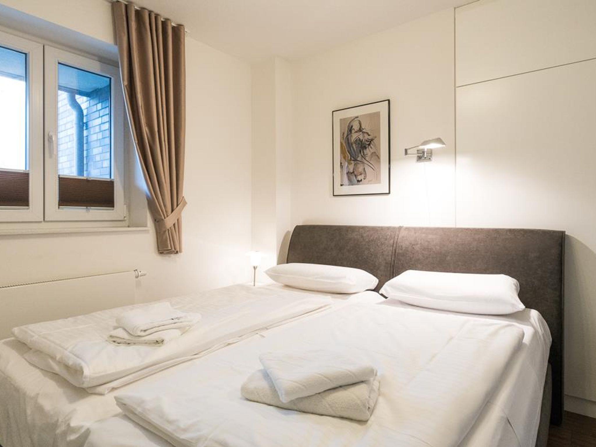 Attraktiver Neubau direkt am Waldrand in bester Lage. 2-Zimmer-Appartement,1. Etage (auch Aufzug vorh.). Exclusive Ausstattung. Flur. Duschbad/WC mit Fön. Wohnraum mit einem Stressless-Sessel u. Sofa., Essecke, LCD-TV, Radio mit CD Player und DVD Player. Möbl. Südwestloggia. Küchenzeile mit 4-Platten-Herd (Ceran), Backofen, Mikrowelle, Geschirrspüler. Schlafraum mit Boxspringbett und TV. Wäschepakete inklusive ( Betten sind bezogen, 1 Handtuch und 1 Duschhandtuch pro Person). Böden mit Fliesen. Insektenschutz. PKW-Platz sowie Fahrradabstellplatz. Gemeinschaftswaschraum (Münz- maschinen) im Keller. Möblierter Balkon mit Strandkorb, Tisch u. Stühlen NICHTRAUCHER. Kostenloses W-LAN. Keine Haustiere erlaubt.