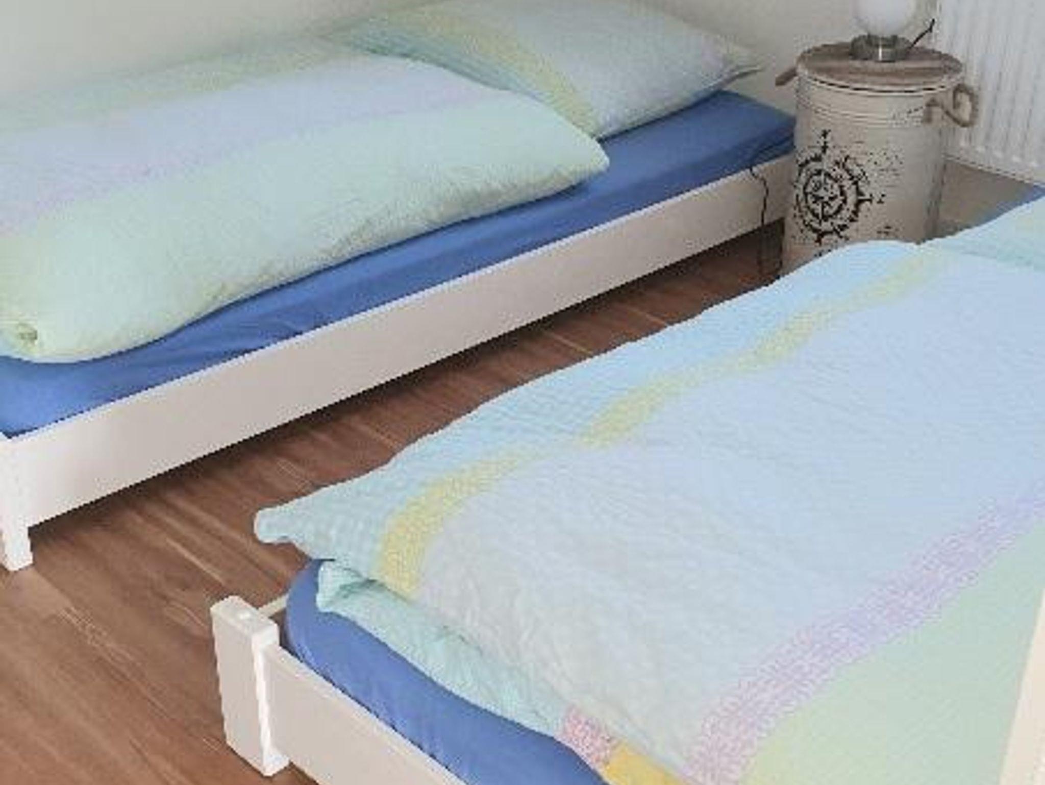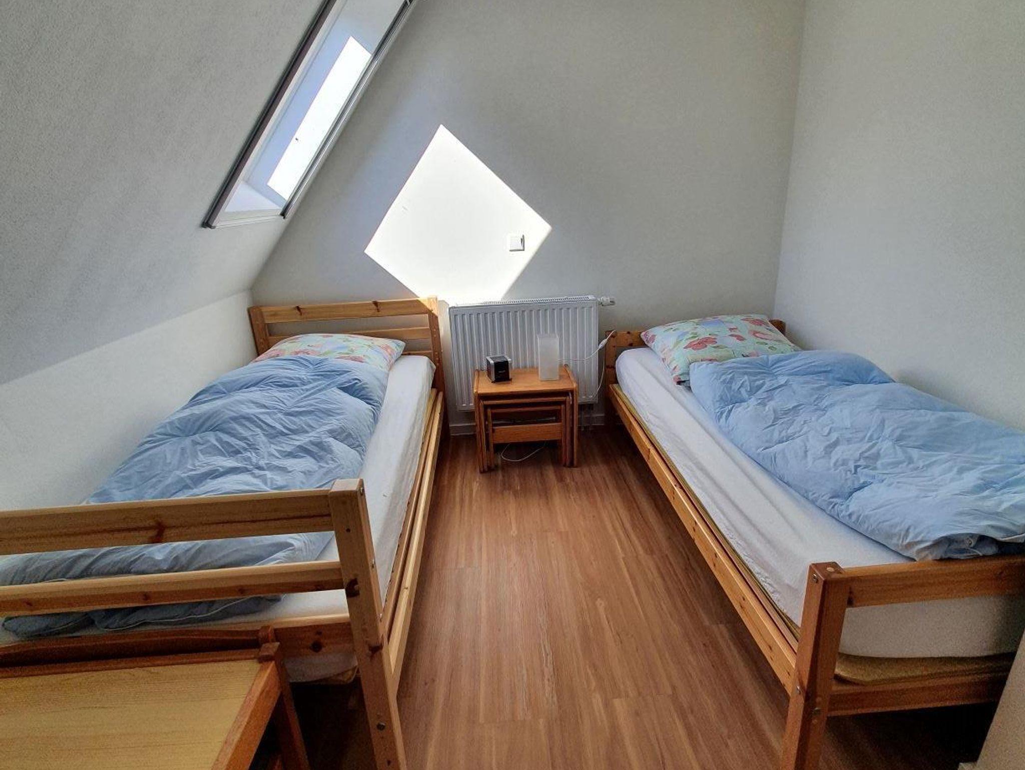 1 Schlafraum mit zwei Einzelbetten (0,90x2m).