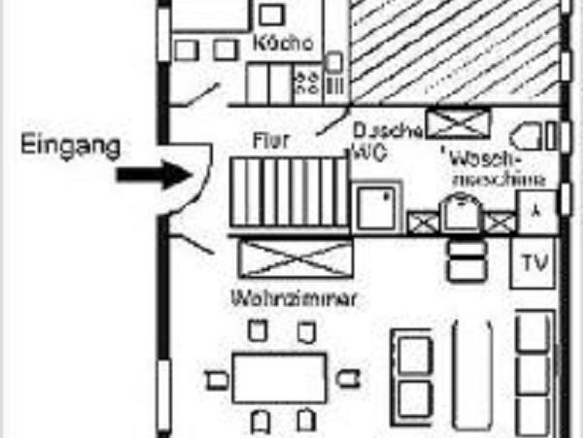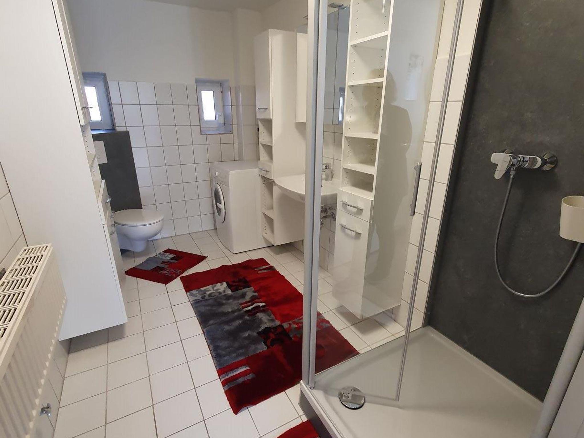 mit Essecke. Dusche/WC mit Waschmaschine (kostenlos). Flur.
