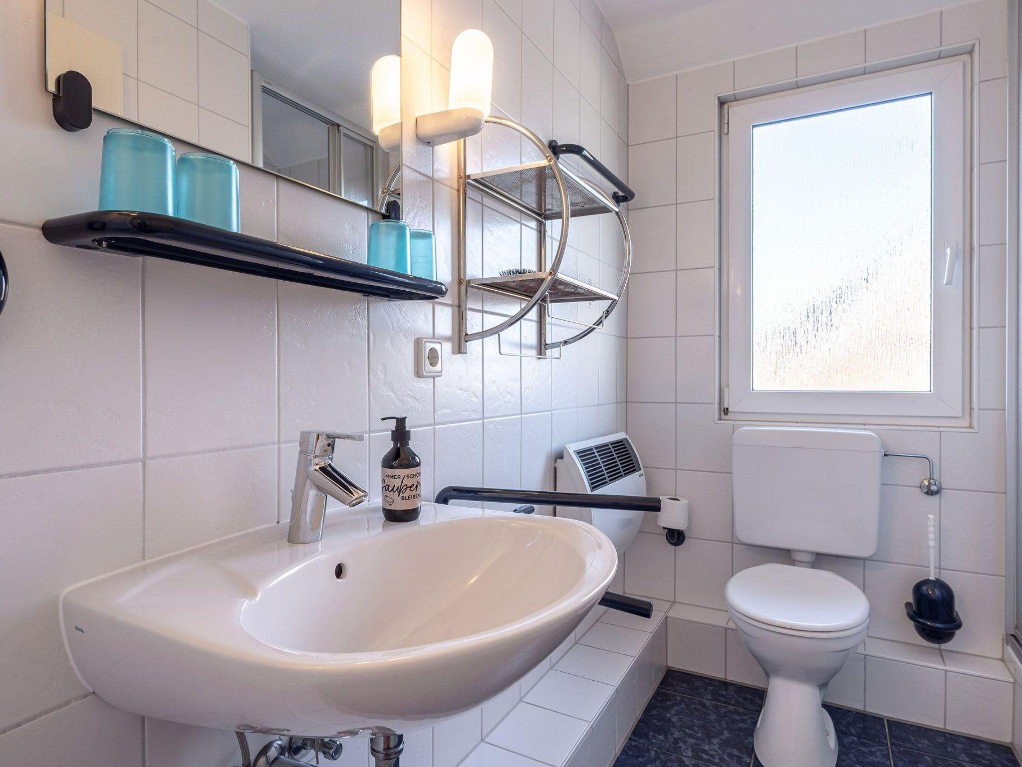 Das Badezimmer umfasst eine Dusche mit Wanne, ein Waschbecken, WC, Spiegel sowie Tageslicht dank eines Fensters. Warmes Wasser sowie ein Staubsauger sind ebenfalls vorhanden. Die Wohnung ist zudem als Nichtraucherunterkunft ausgewiesen und mit einem Rauchmelder ausgestattet.