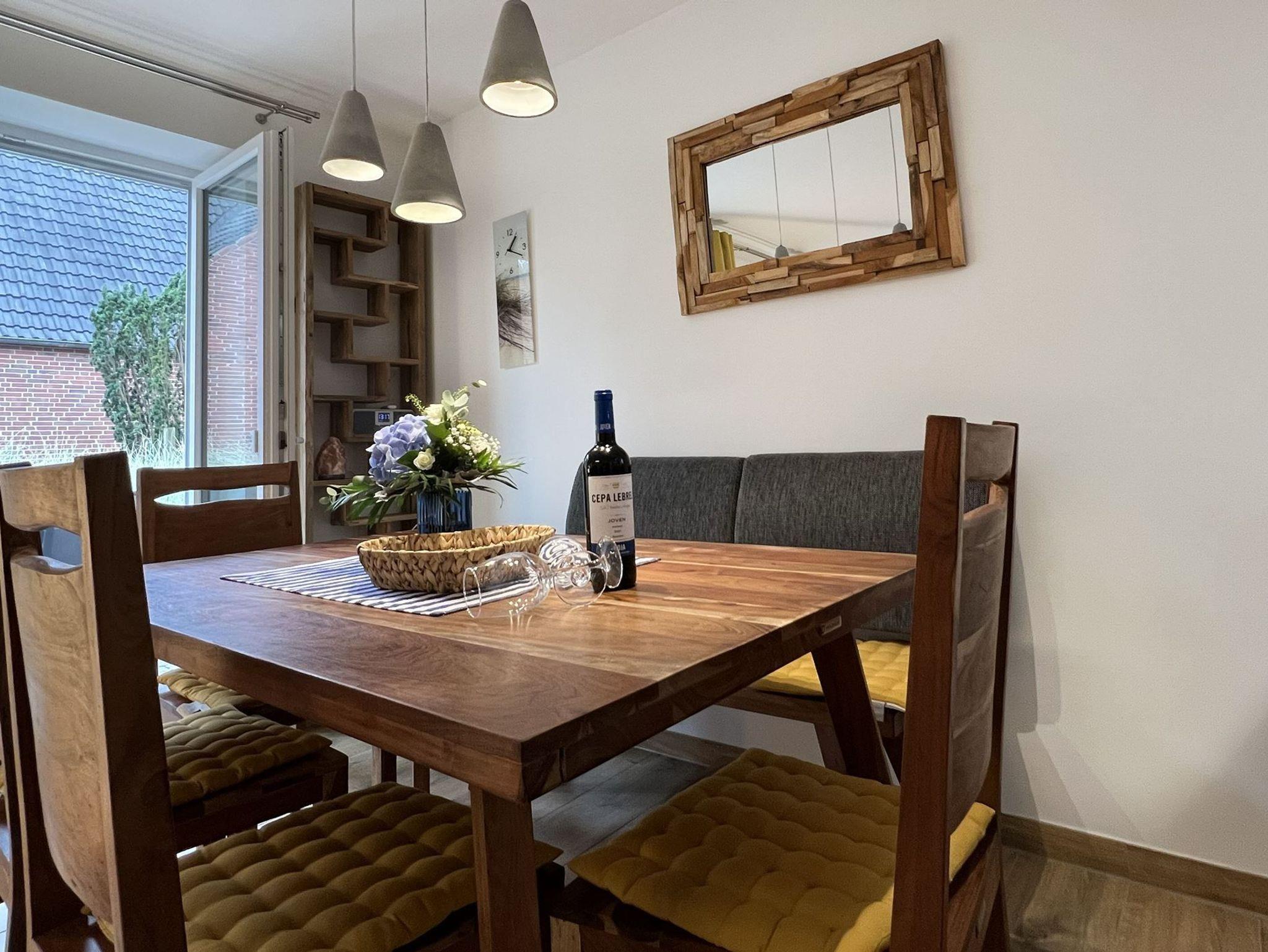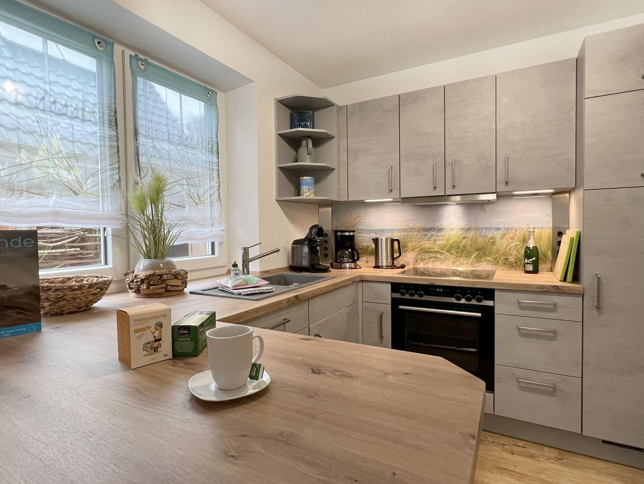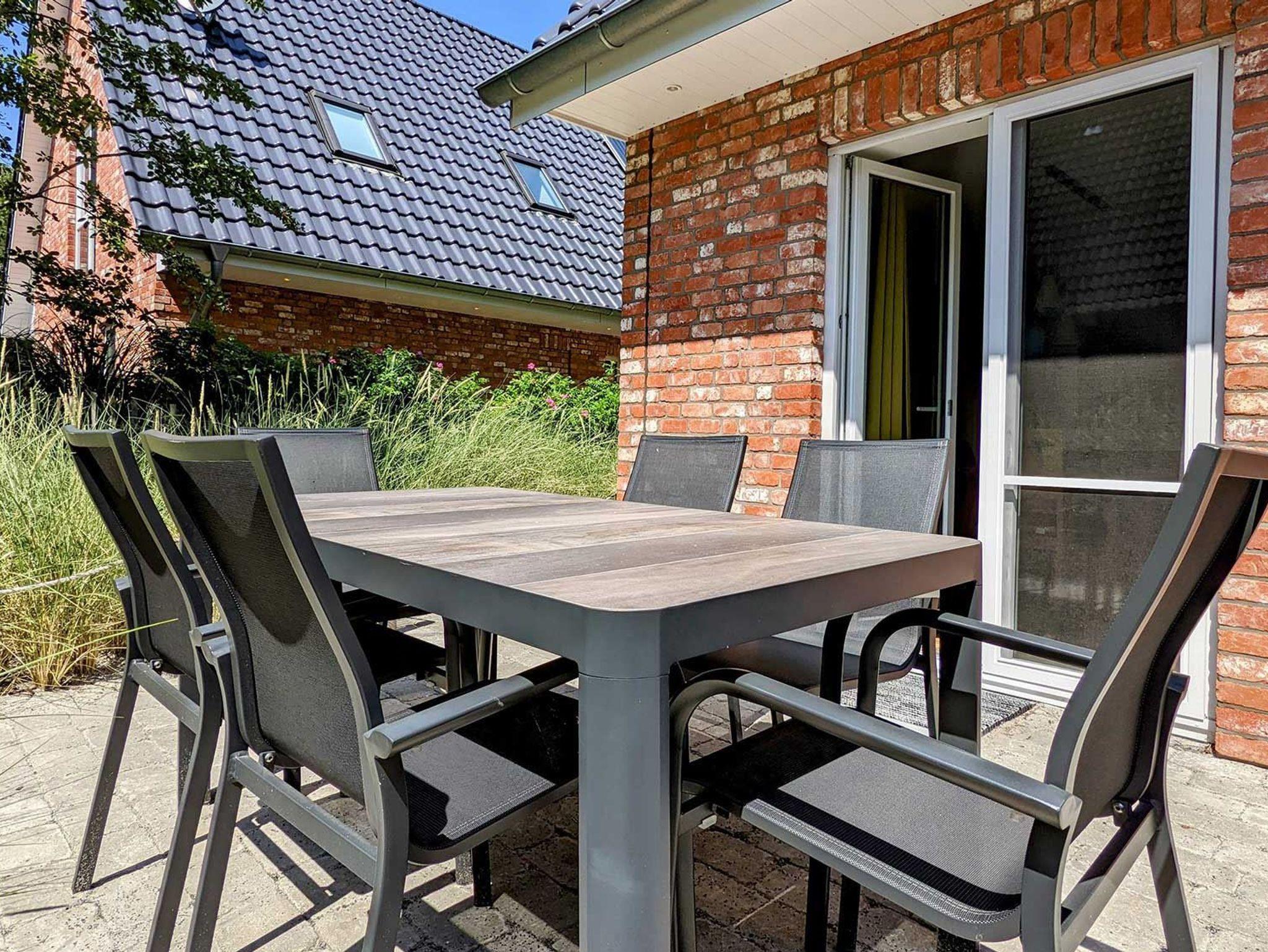 Im Erdgeschoss befindet sich ein offener Wohn-Essbereich mit einer U-förmigen, umfangreich ausgestatteten Küche. Am Morgen genießen Sie einen ersten Kaffee am Küchentresen. Im Wohnbereich lädt eine Sofalandschaft zum Entspannen am Kaminofen ein. Hier befindet sich auch ein großer Fernseher, der - wie auch das WLAN - kostenlos genutzt werden kann. Über einen ebenerdigen Zugang gelangen Sie auf die möblierte Terrasse des Hauses. Dort locken zudem zwei Sonnenliegen, ein Sonnenschirm und ein Strandkorb nach draußen. In der umlaufend angelegten Dünenlandschaft befindet sich sogar eine Außensauna, ein Highlight für Saunabegeisterte. Am Ende eines Urlaubstages finden Sie Erholung in einem der drei Schlafzimmer, von denen zwei mit Doppelbetten und eines mit zwei Einzelbetten ausgestattet ist. Ein Babyreisebett und ein Hochstuhl ist vorhanden. Zwei Bäder mit ebenerdigen Duschen im EG und im 1.OG sind vorhanden, ebenso Waschmaschine und Trockner. PKW-Stellplatz vor dem Haus.