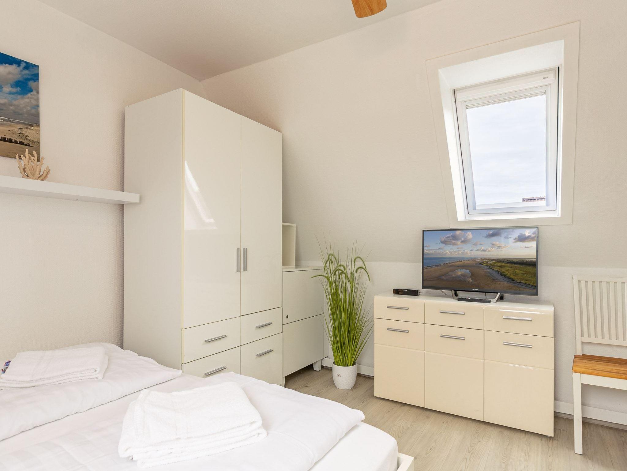 Schlafzimmer mit Doppelbett (2x 90x200cm), Kleiderschrank und SMART-TV.