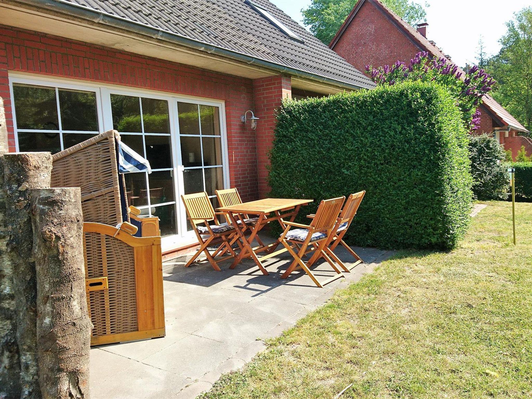 Eine Terrasse mit Gartenmöbeln und Strandkorb lädt ein zu gemütlichen Grillabenden (Holzkohlegrill vorhanden), im Gartenhaus finden Sie Liegen, 2 Fahrräder stehen kostenlos zur Verfügung.