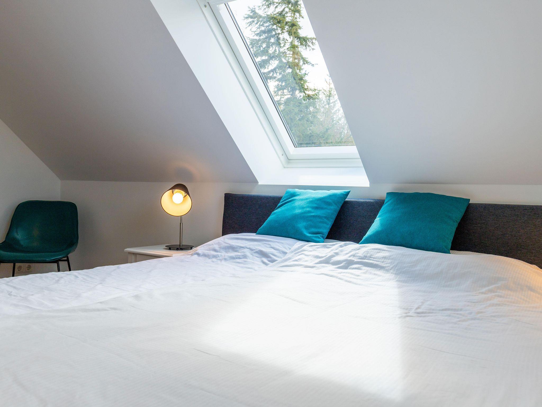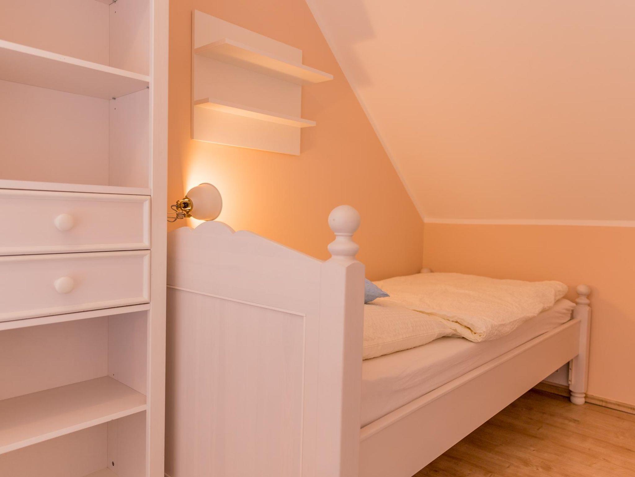 Im Obergeschoß befinden sich zwei Schlafzimmer, ein Doppelzimmer und ein Zimmer mit zwei Einzelbetten (90x200cm), und ein Duschbad.