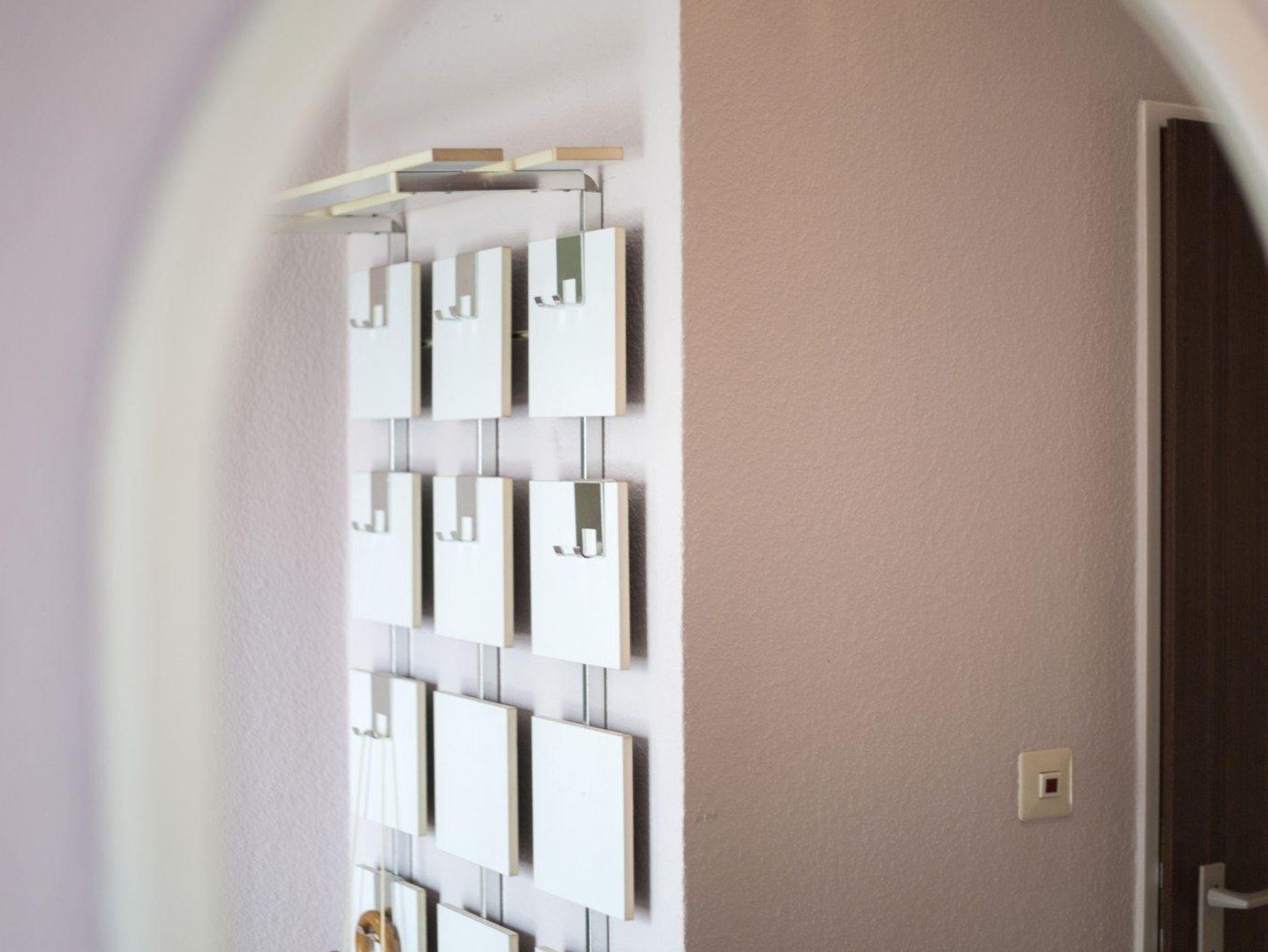 Flur mit Garderobe, Schuhschrank und Spiegel im Eingangsbereich. Abstellraum mit Bügelbrett und Wäscheständer vorhanden.