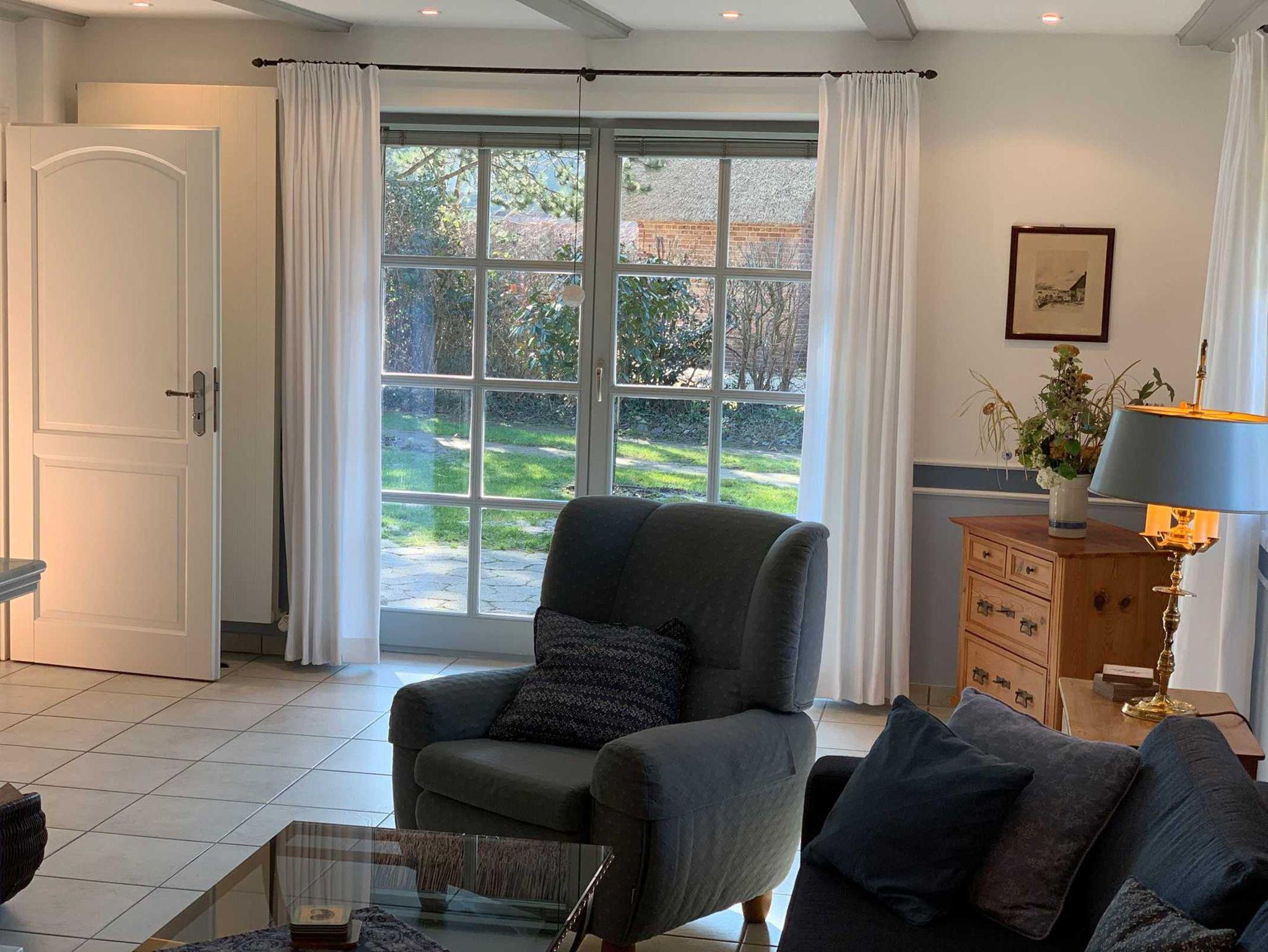 Charmantes Reetdachhaus in St. Peter-Ording mit Garten, Kamin und stilvoller Ausstattung für entspannte Urlaubstage.