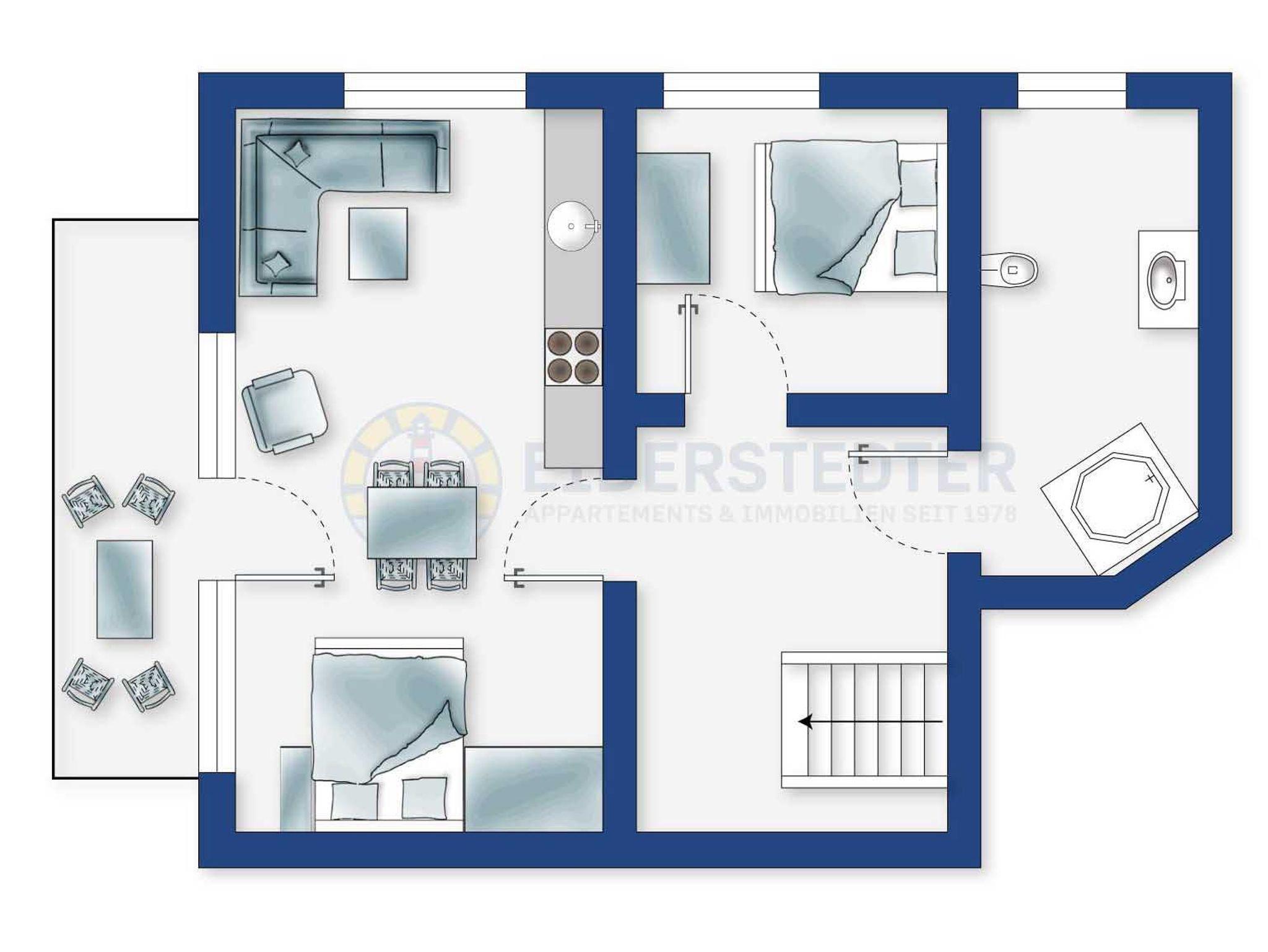 Moderne, elegante 2-Zimmer-Ferienwohnung mit Südbalkon in zentraler Lage von St. Peter-Ording.